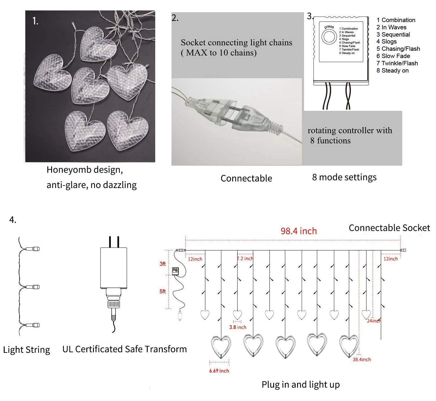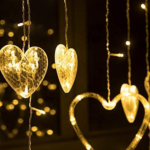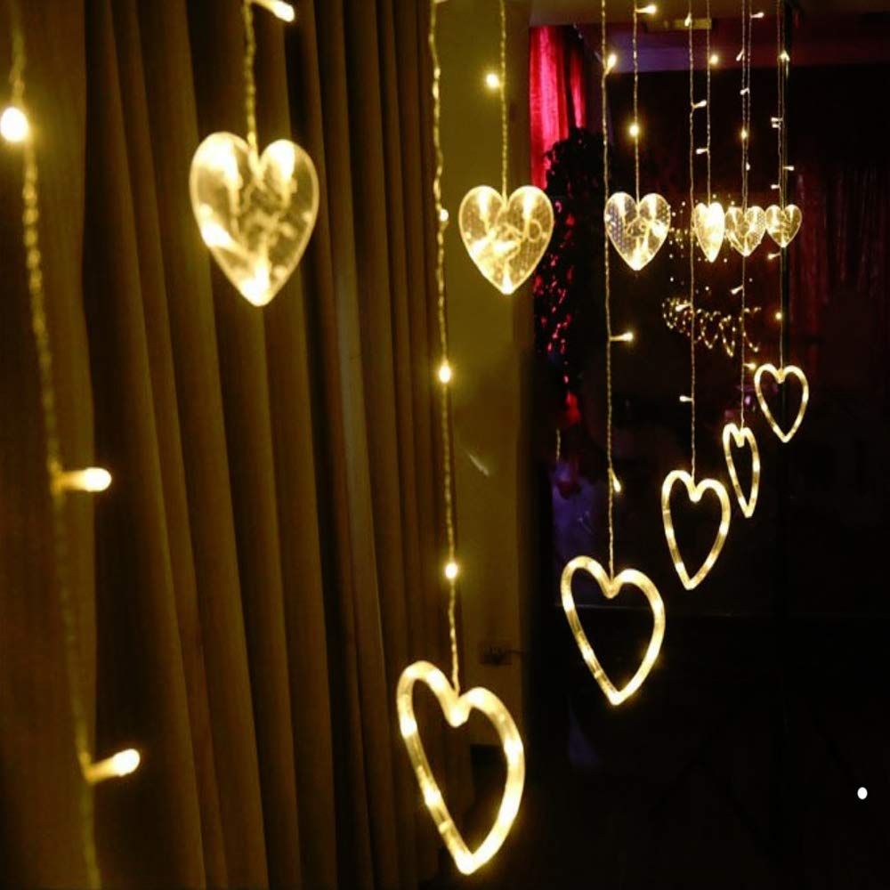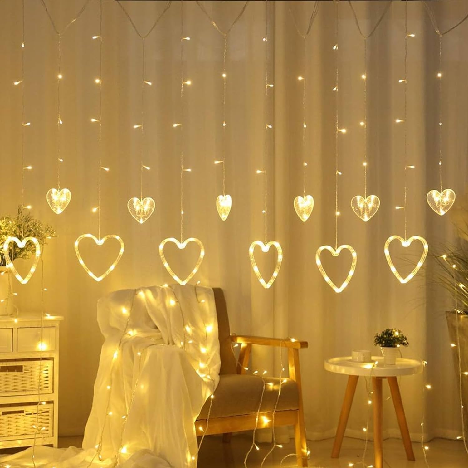 Lexton Heart Curtain String Lights. Featuring 6 big hearts and 6 small hearts in a warm white glow, these beautiful lights create the perfect ambiance for bedrooms, living rooms, weddings, parties, Valentine’s Day, or festive celebrations.