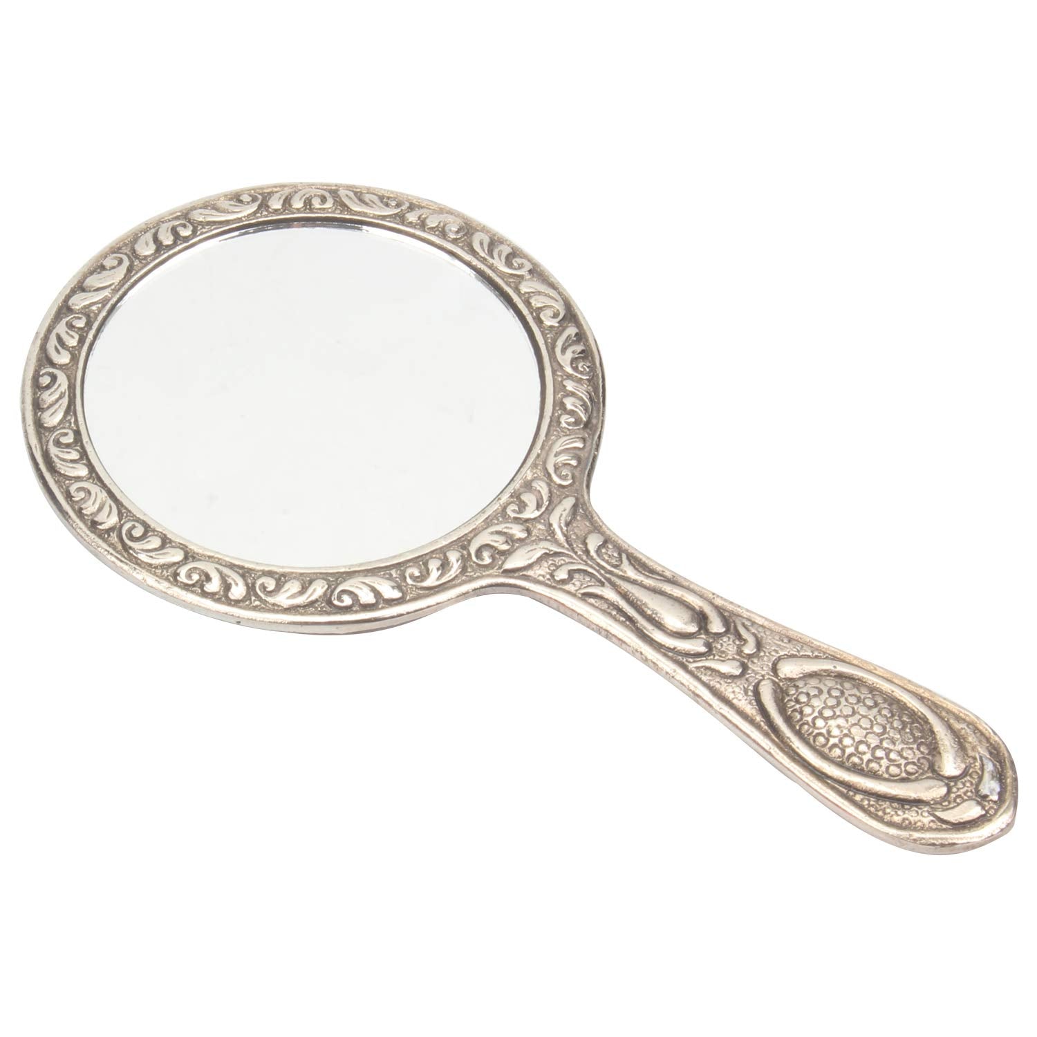 iCraft ICCM02 Hand Carved Metal Round Hand Mirrors for Home Decorations (Metal, Pack of 1)