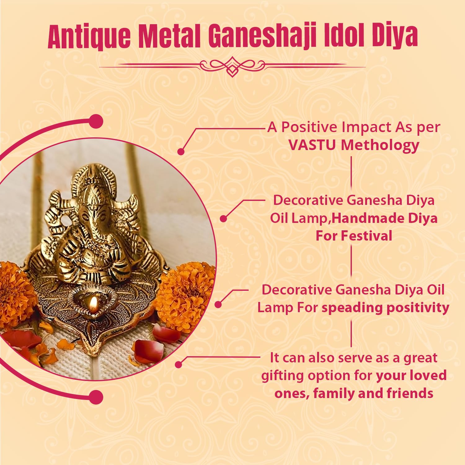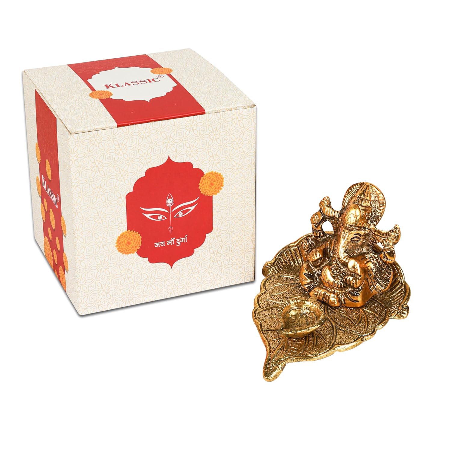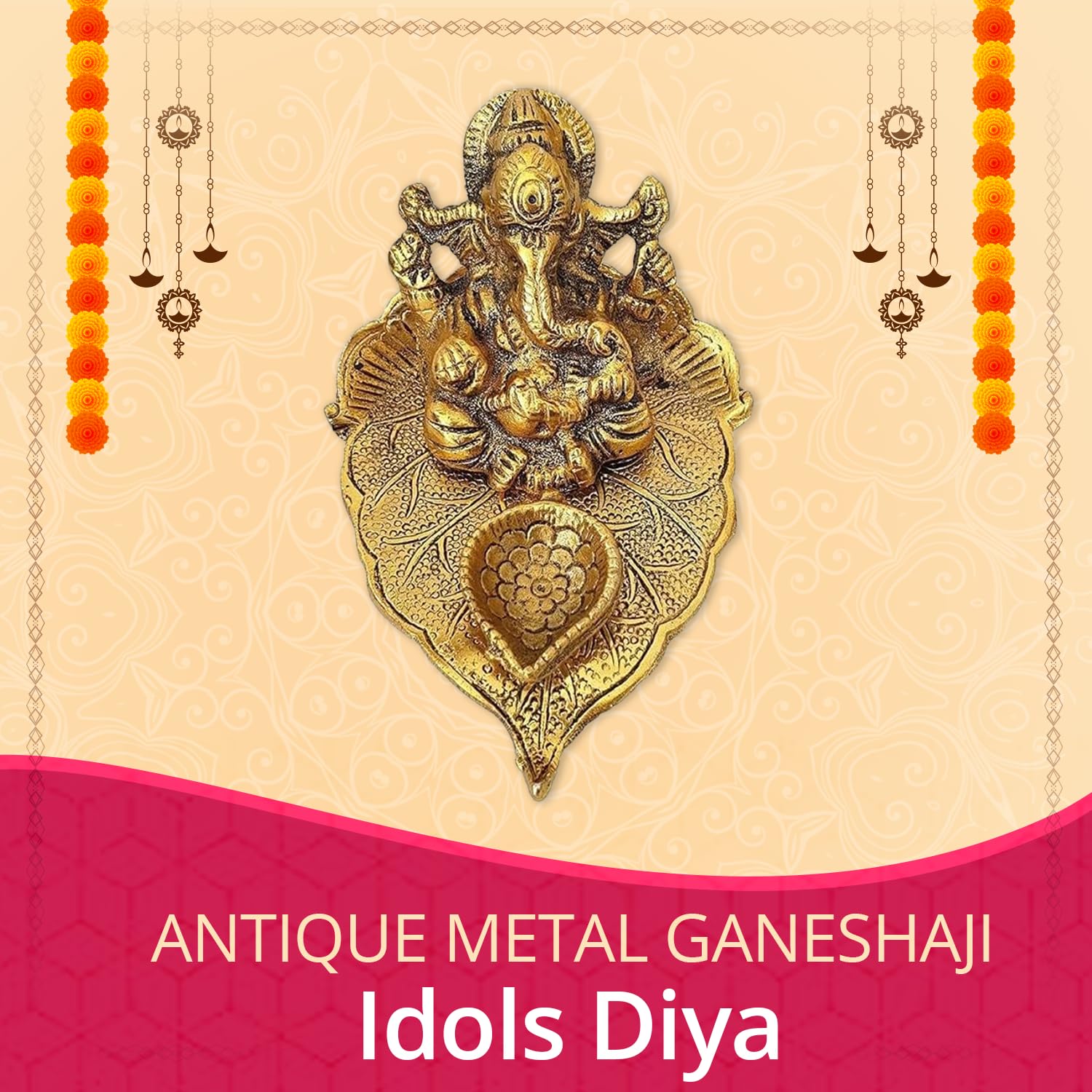 Klassic Antique Golden Metal Ganesh Diya – Elegant antique-finish metal diya with Lord Ganesh design, perfect for puja, festivals, décor, and gifting.