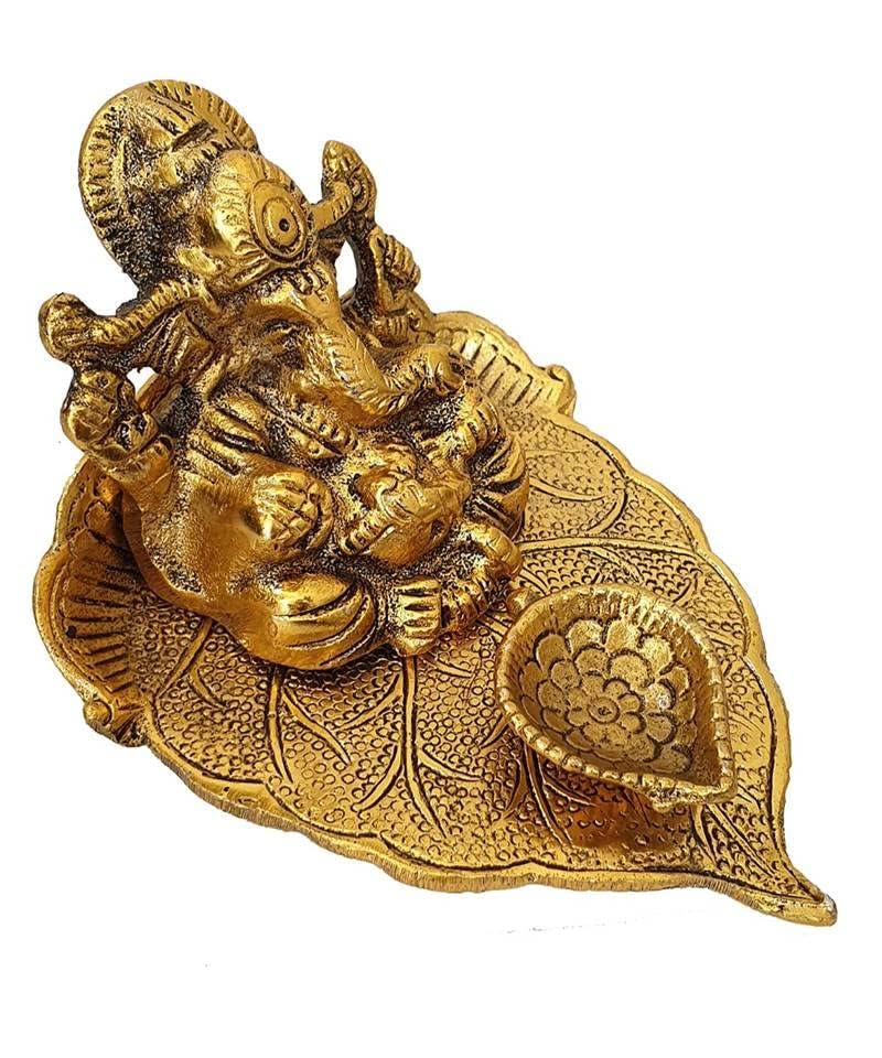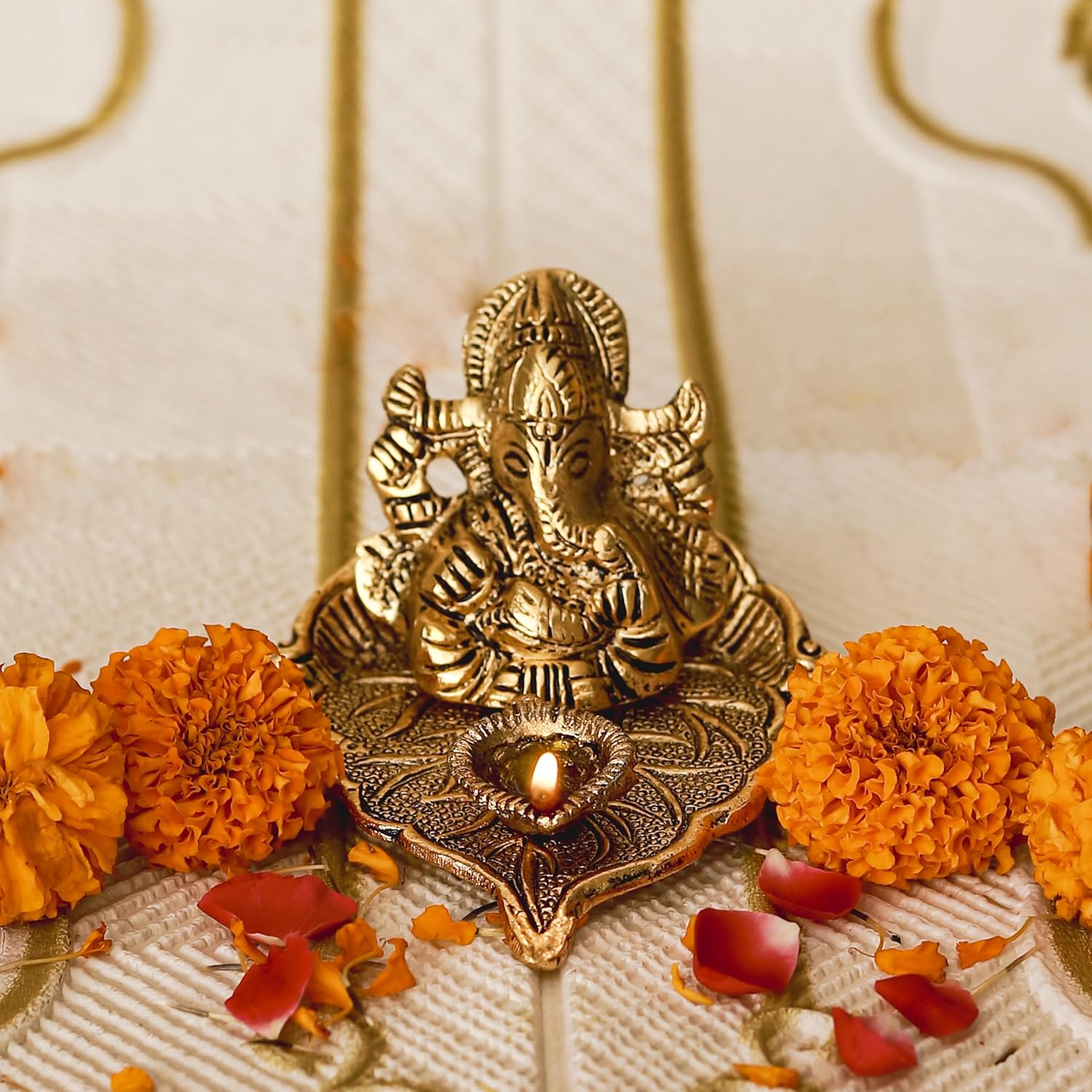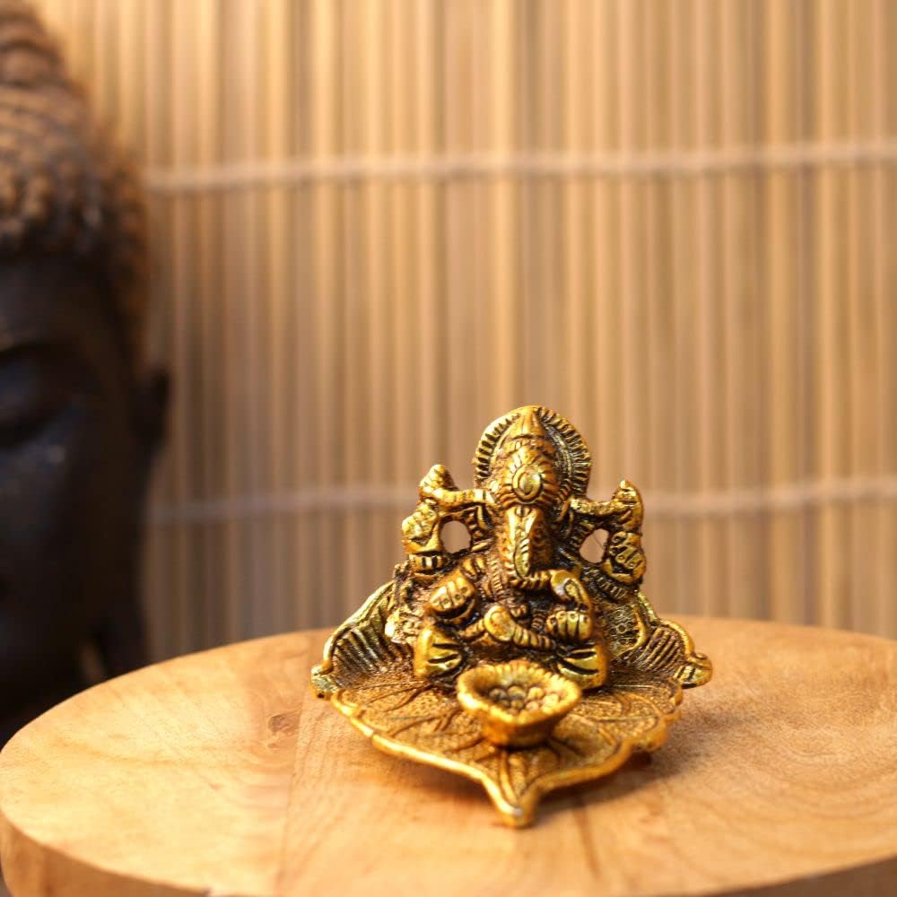 Klassic Antique Golden Metal Ganesh Diya – Elegant antique-finish metal diya with Lord Ganesh design, perfect for puja, festivals, décor, and gifting.