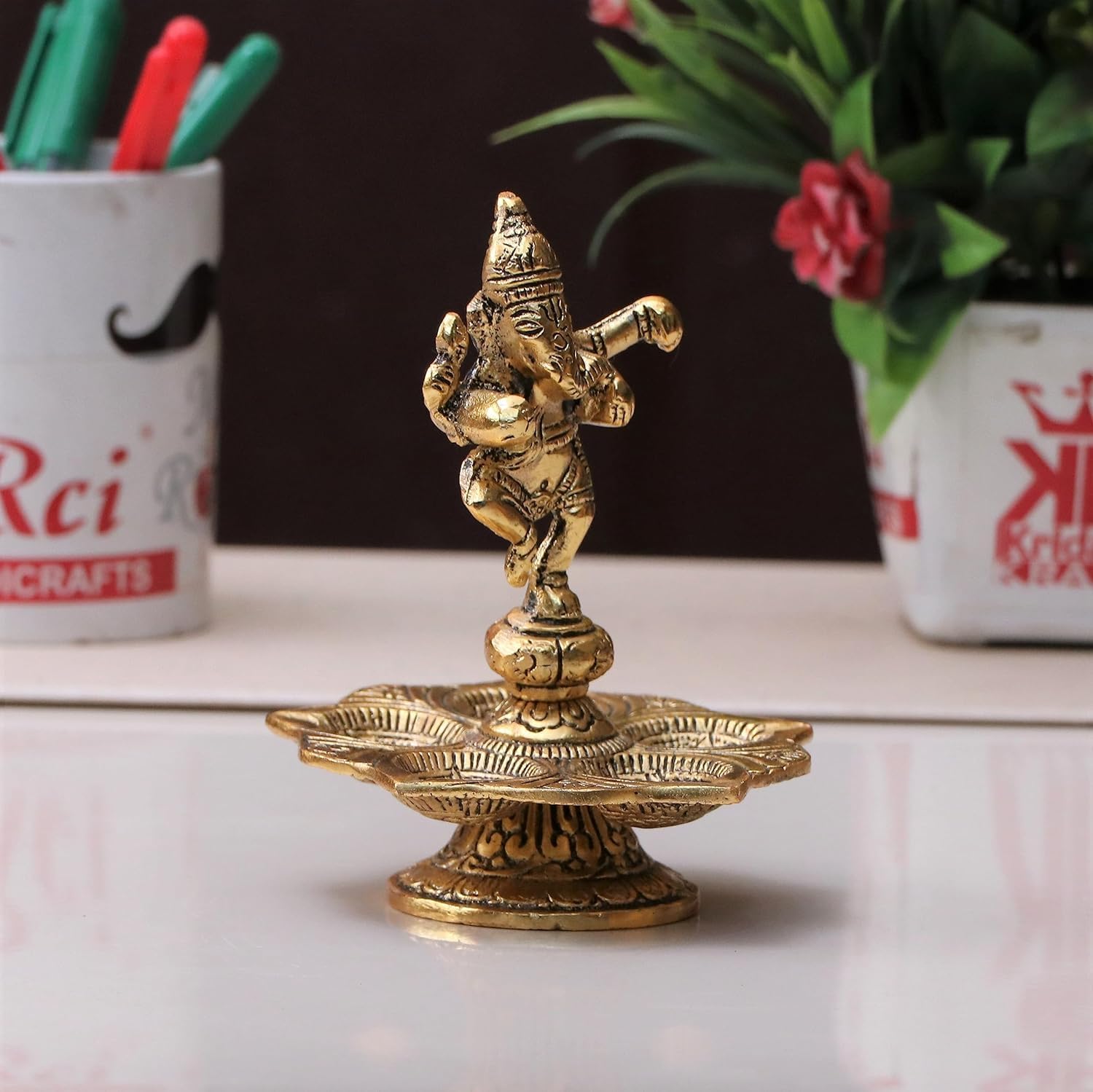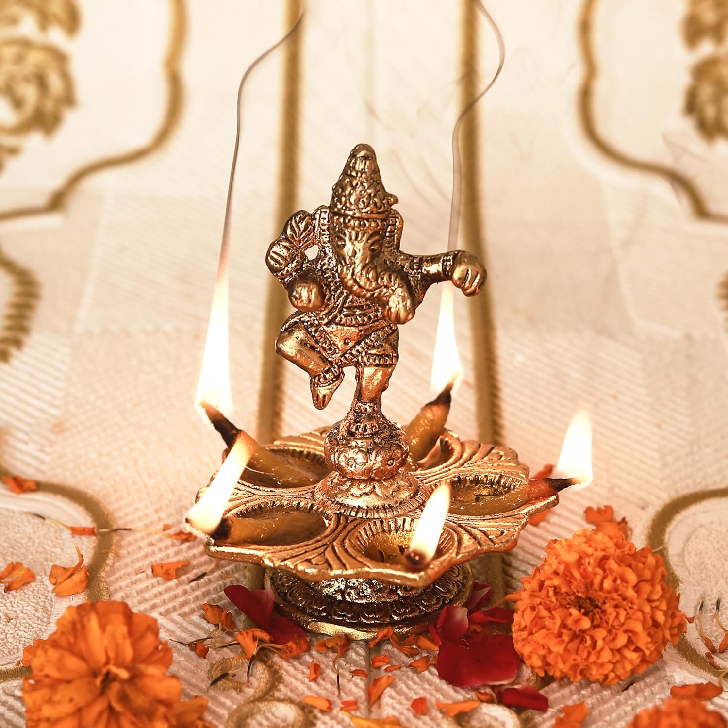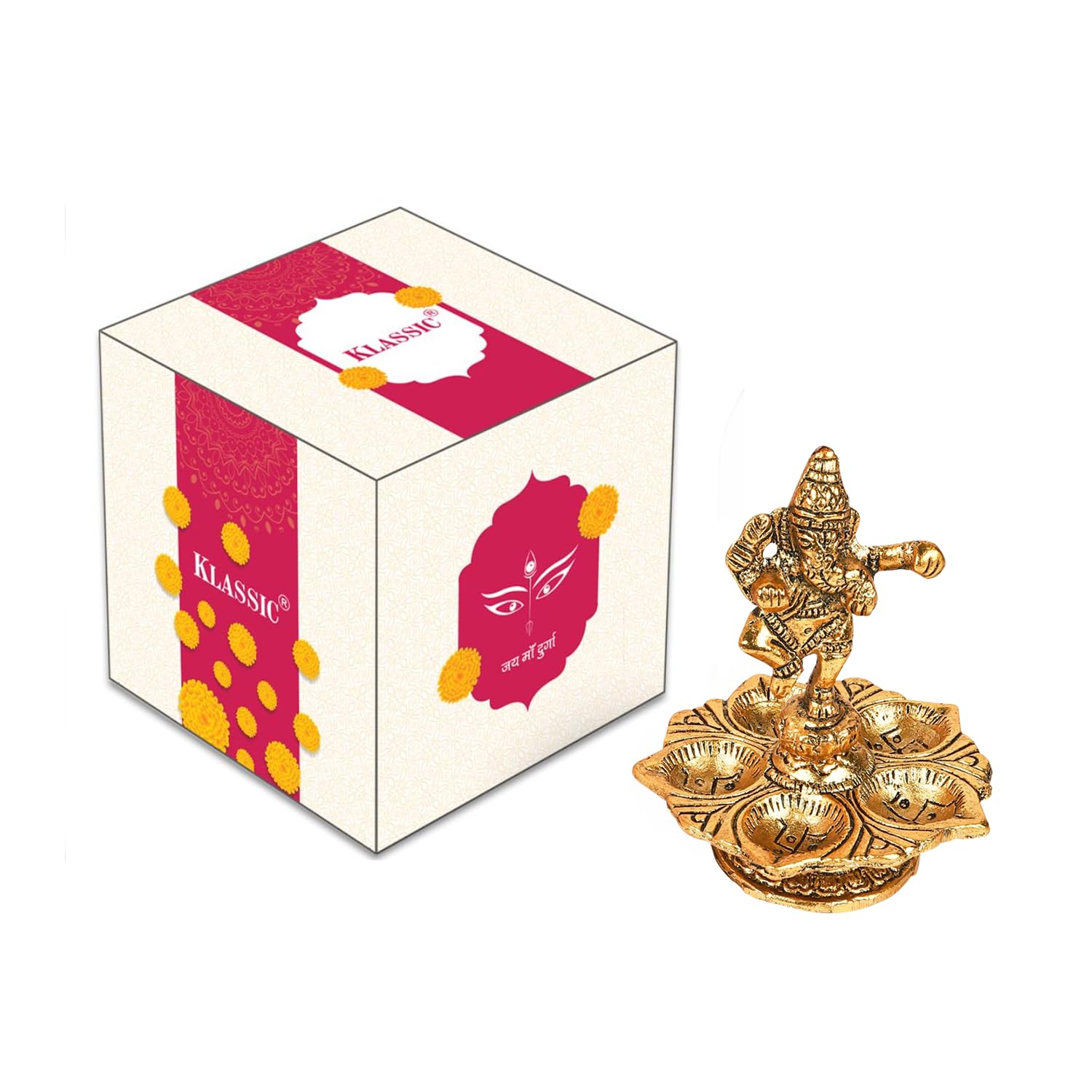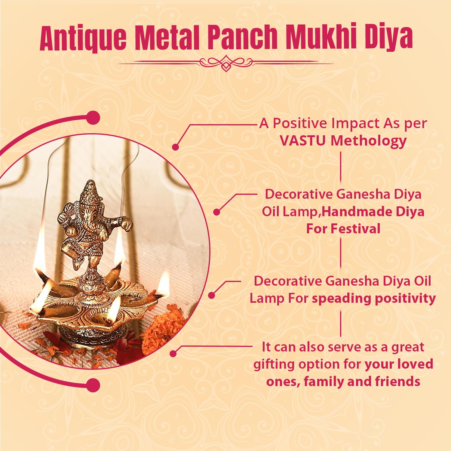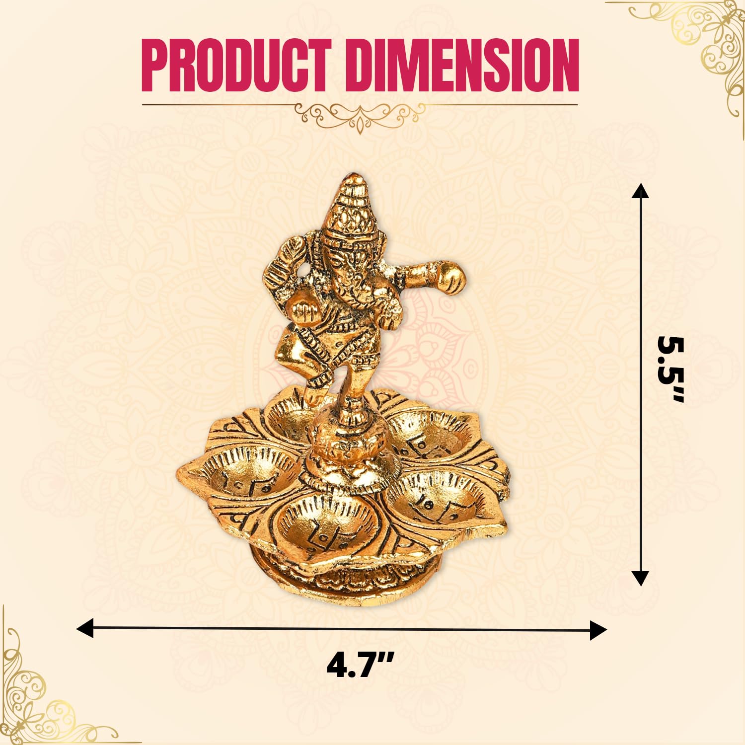 Klassic Antique Ganeshaji Metal Diya | Gold Plated 5 Batti Oil Lamp
