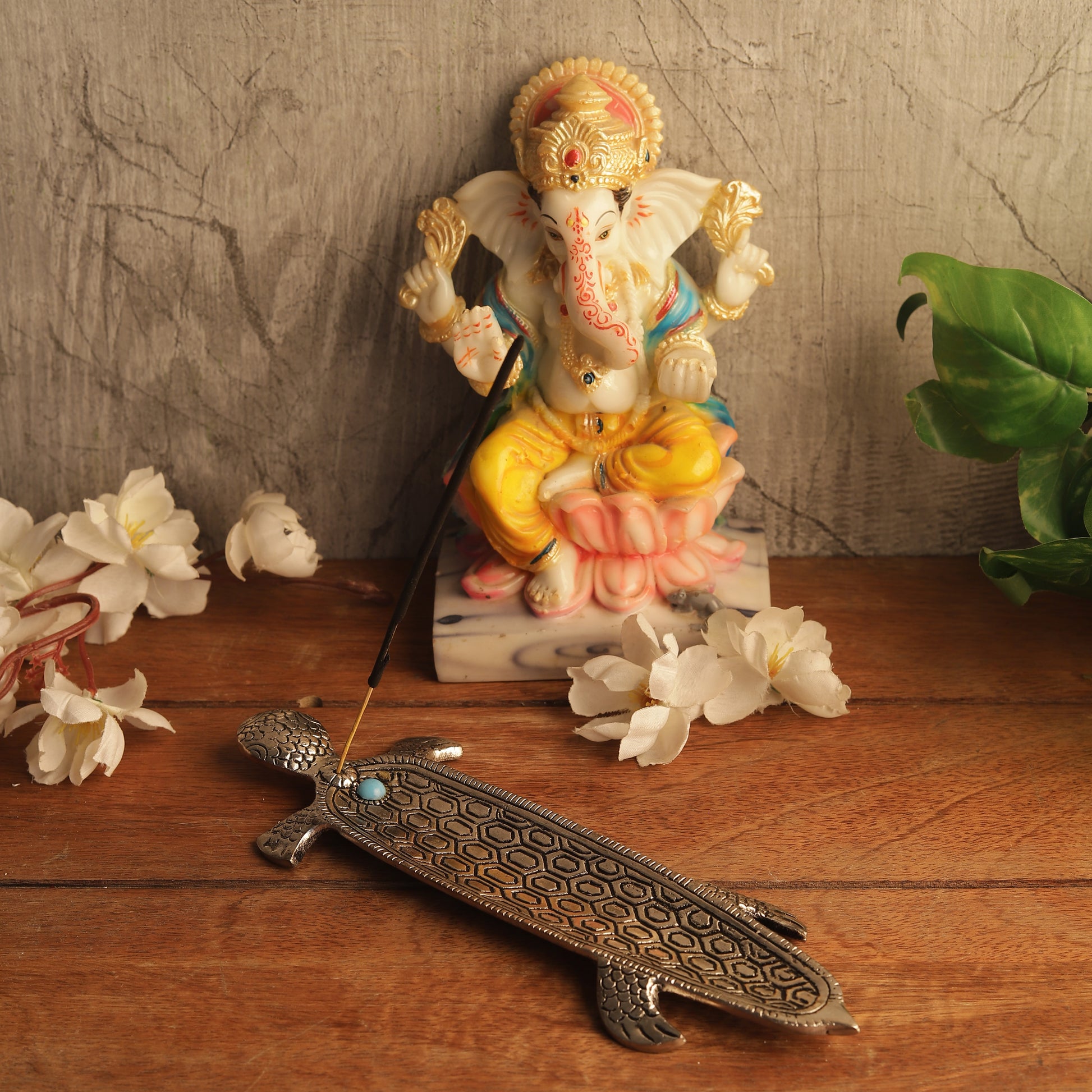 iCraft Incense Stick Holder/Recycled Aluminium Tortoise Shape Incense Stick Holder (Silver,Pack of 1)