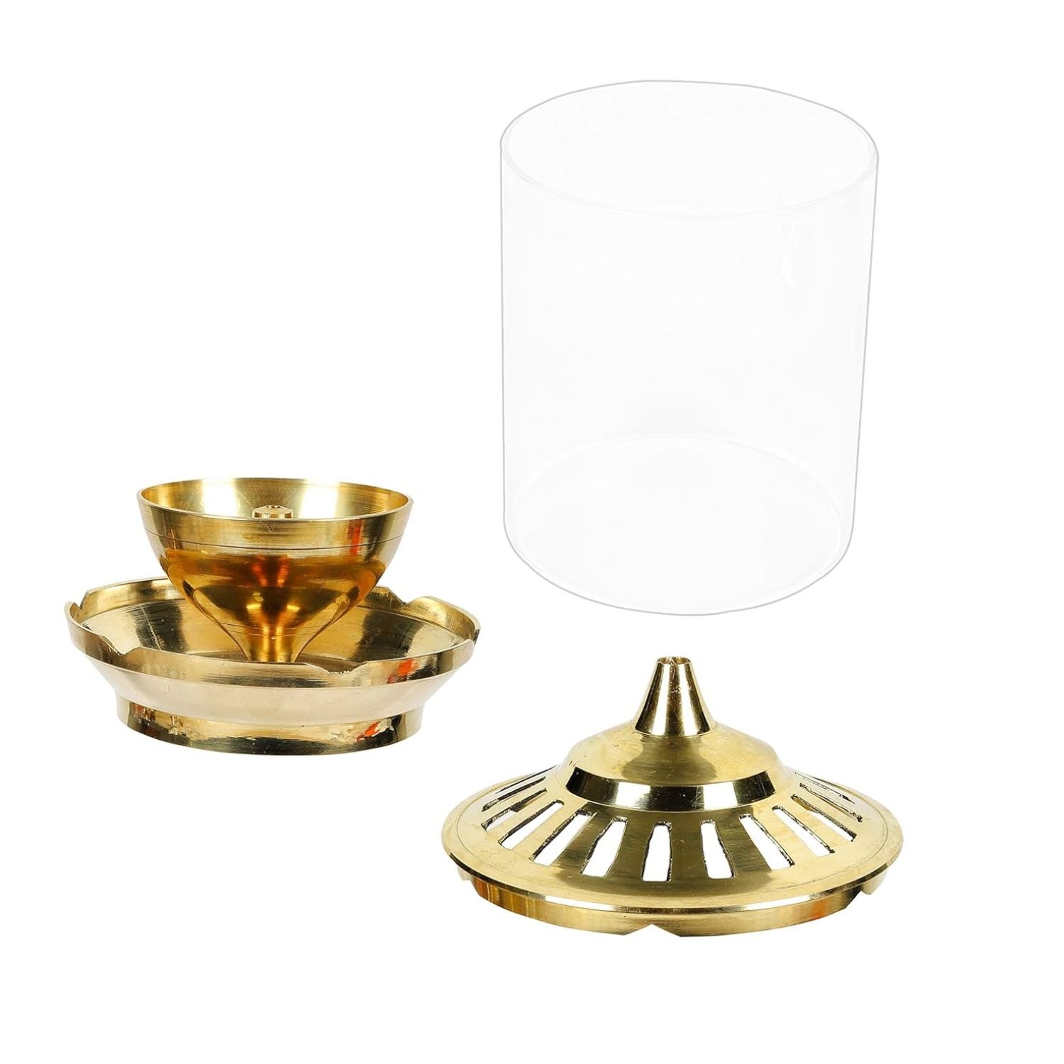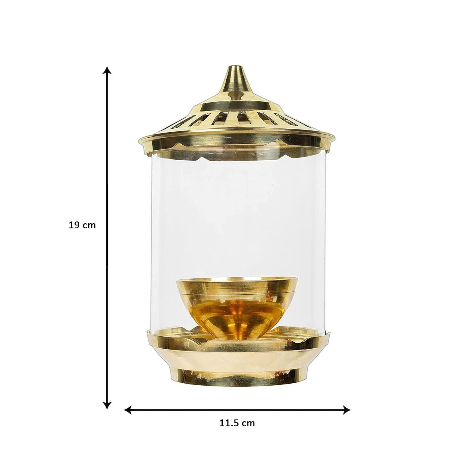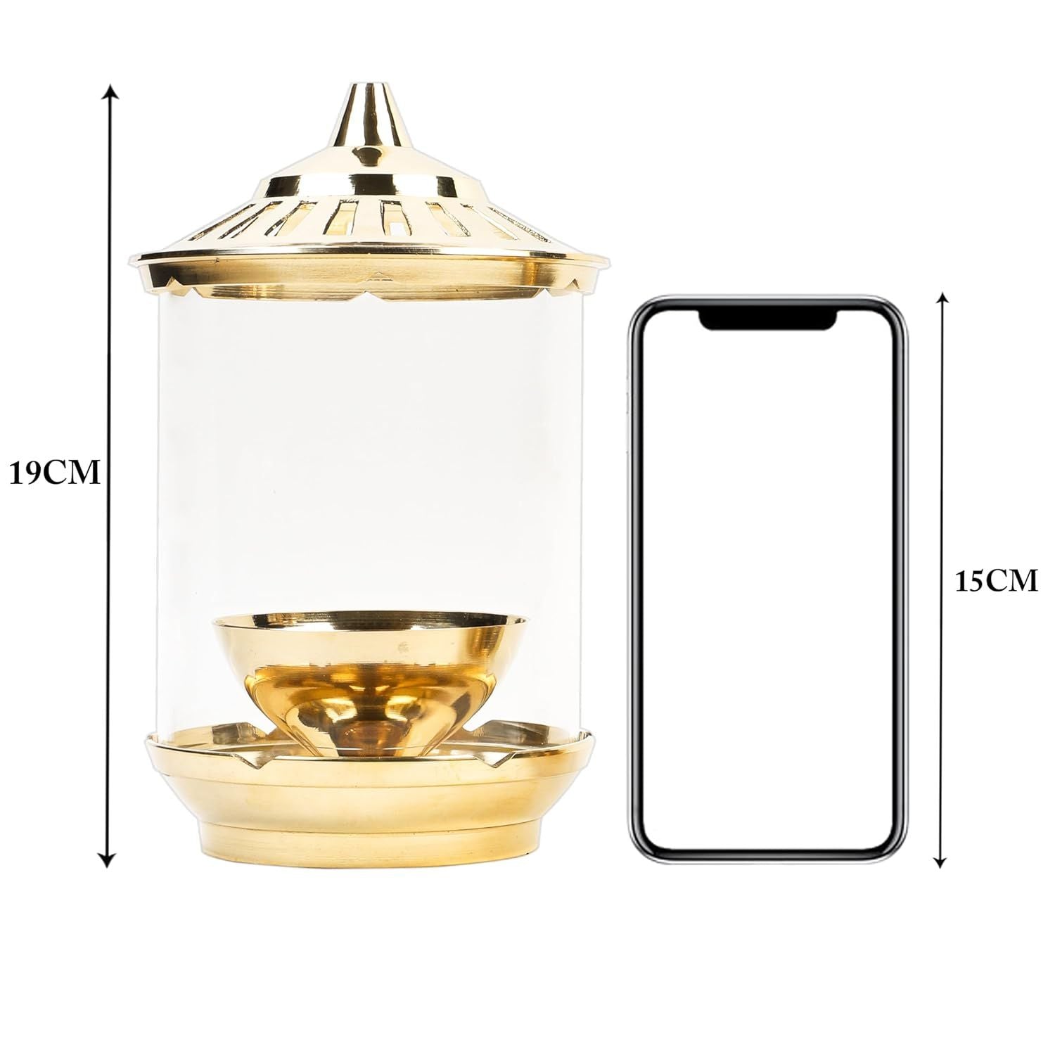 Klassic Kumbha Large Brass Akhand Diya with Glass Shade – 7 Inch