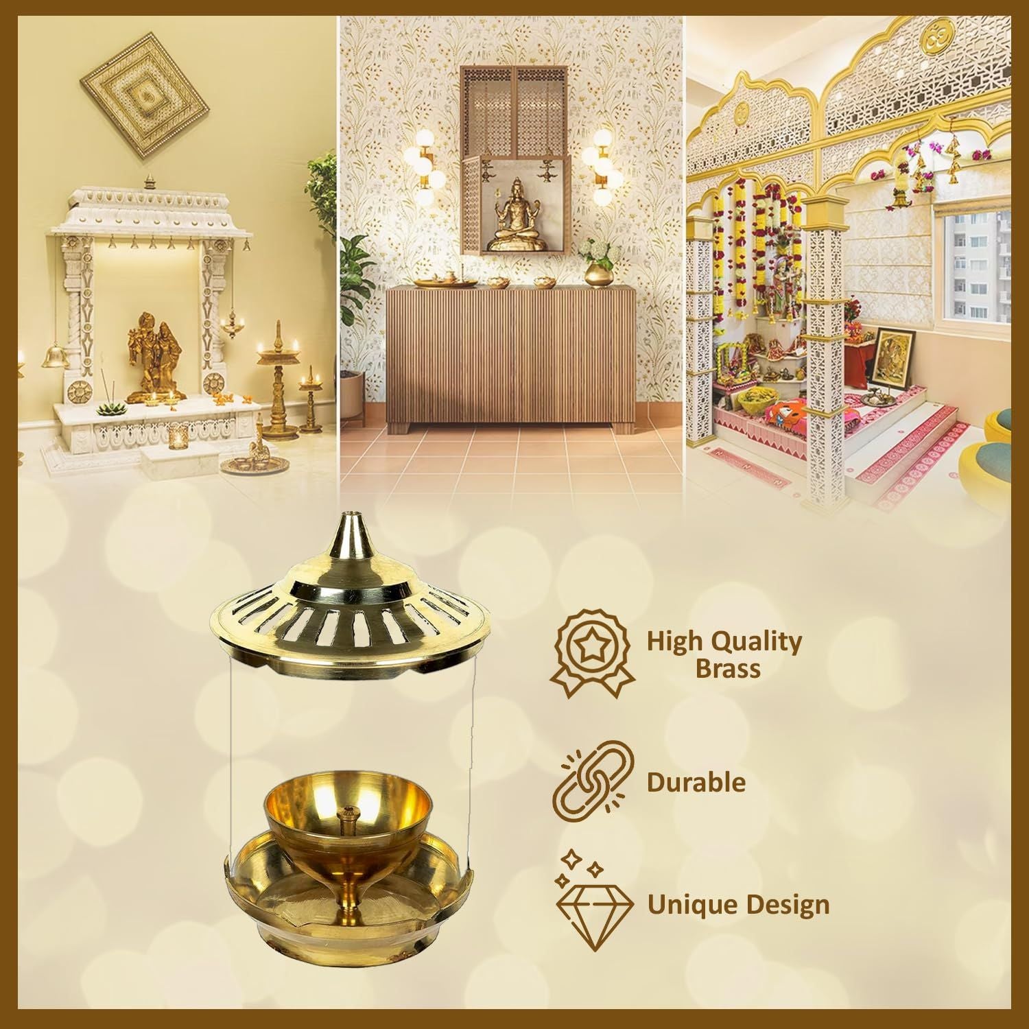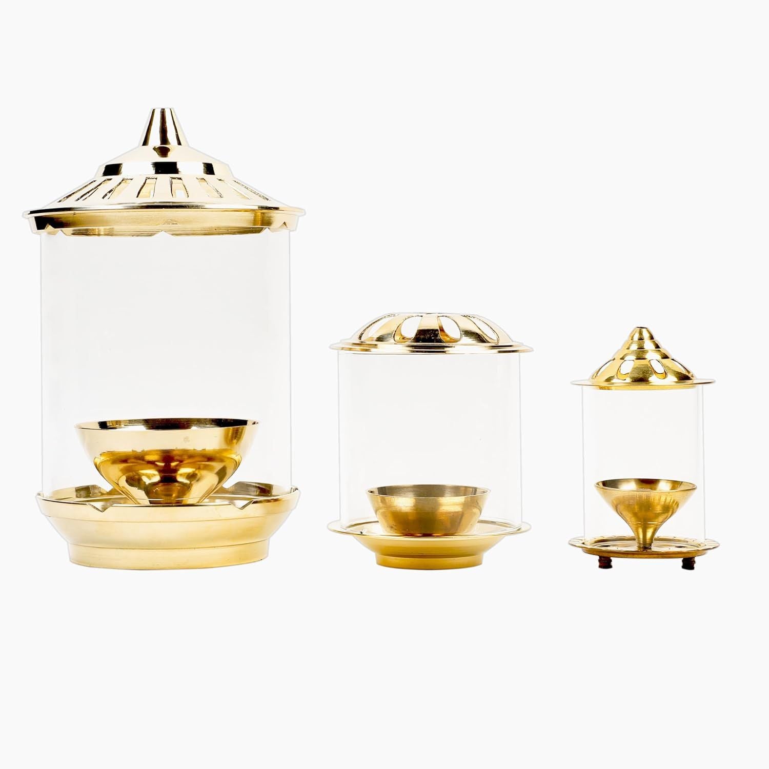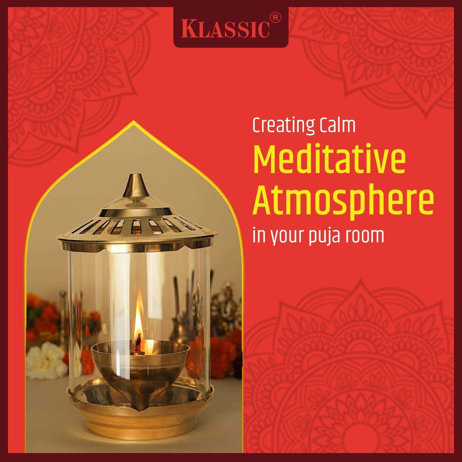 Klassic Kumbha Large Brass Akhand Diya with Glass Shade – 7 Inch