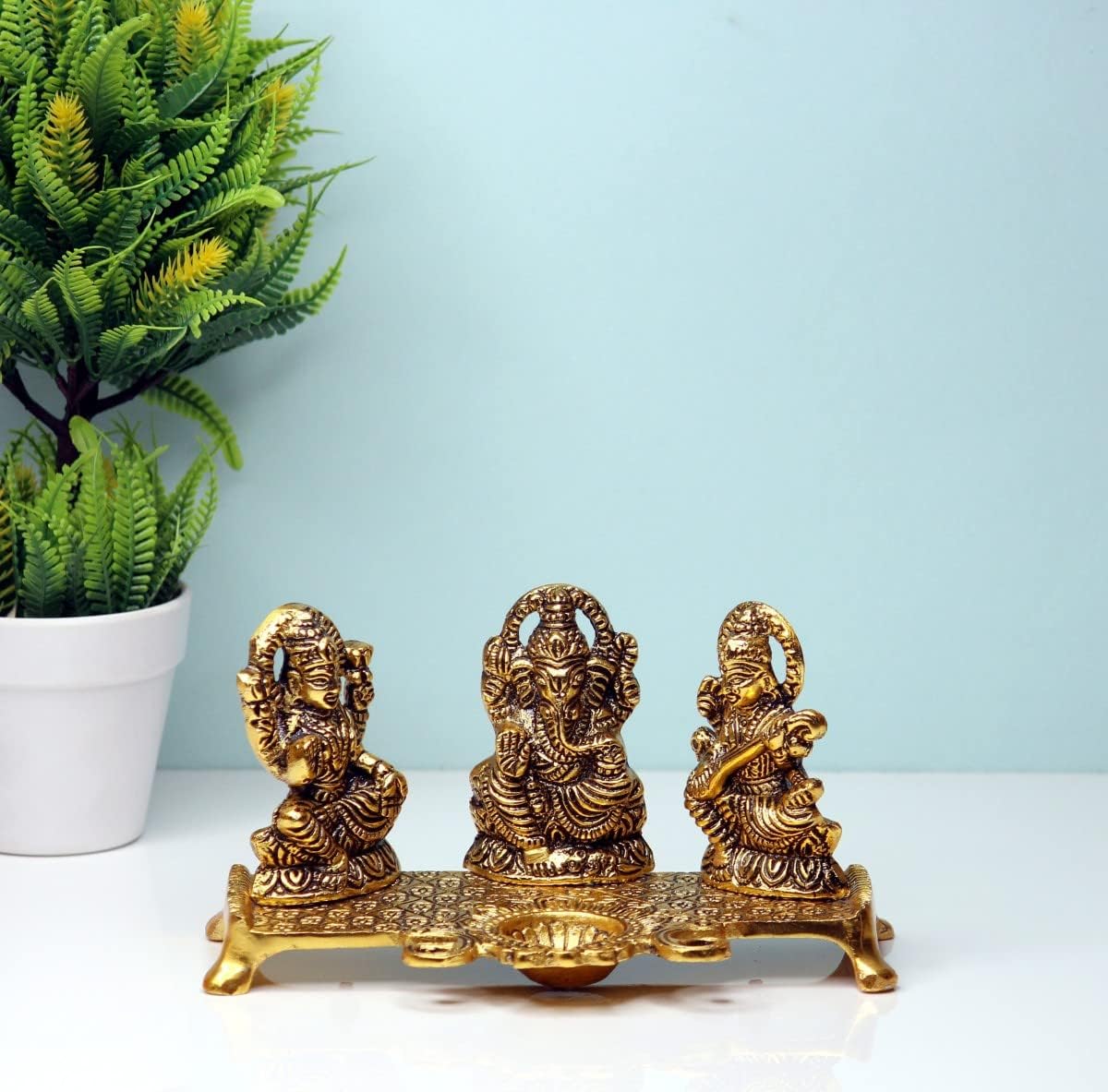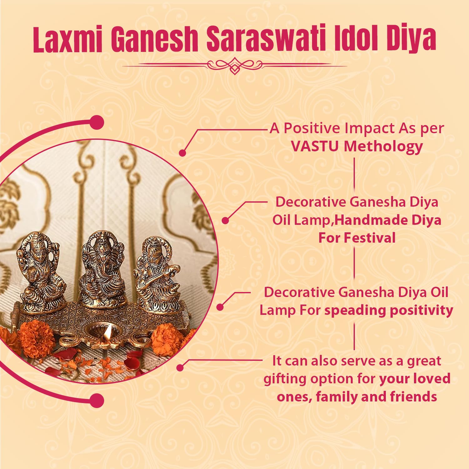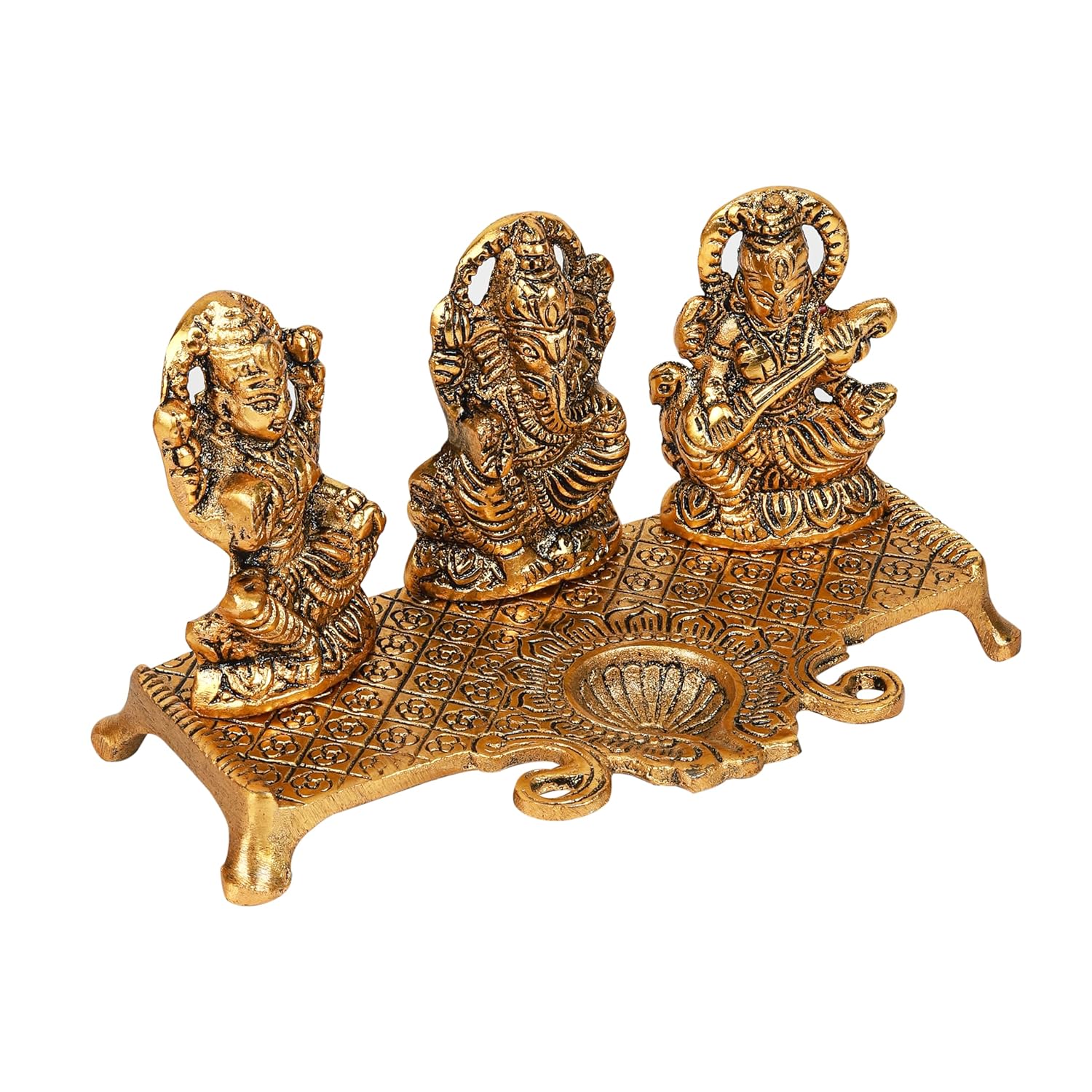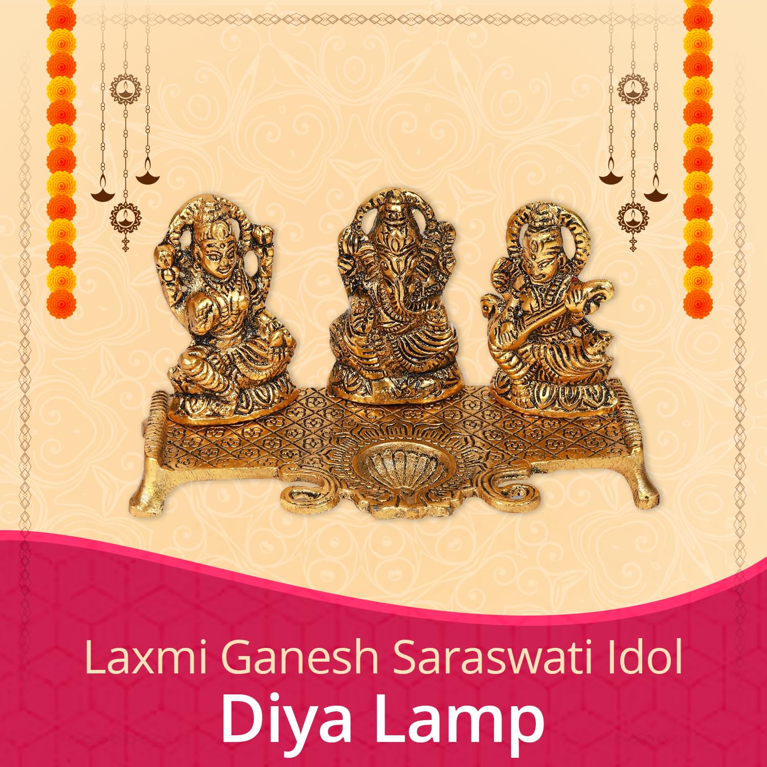 Klassic Golden Laxmi Ganesh Saraswati Idol Diya