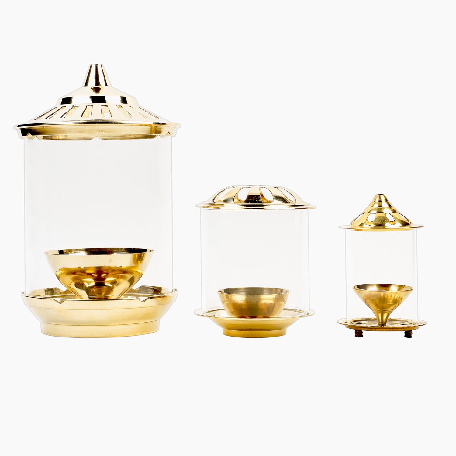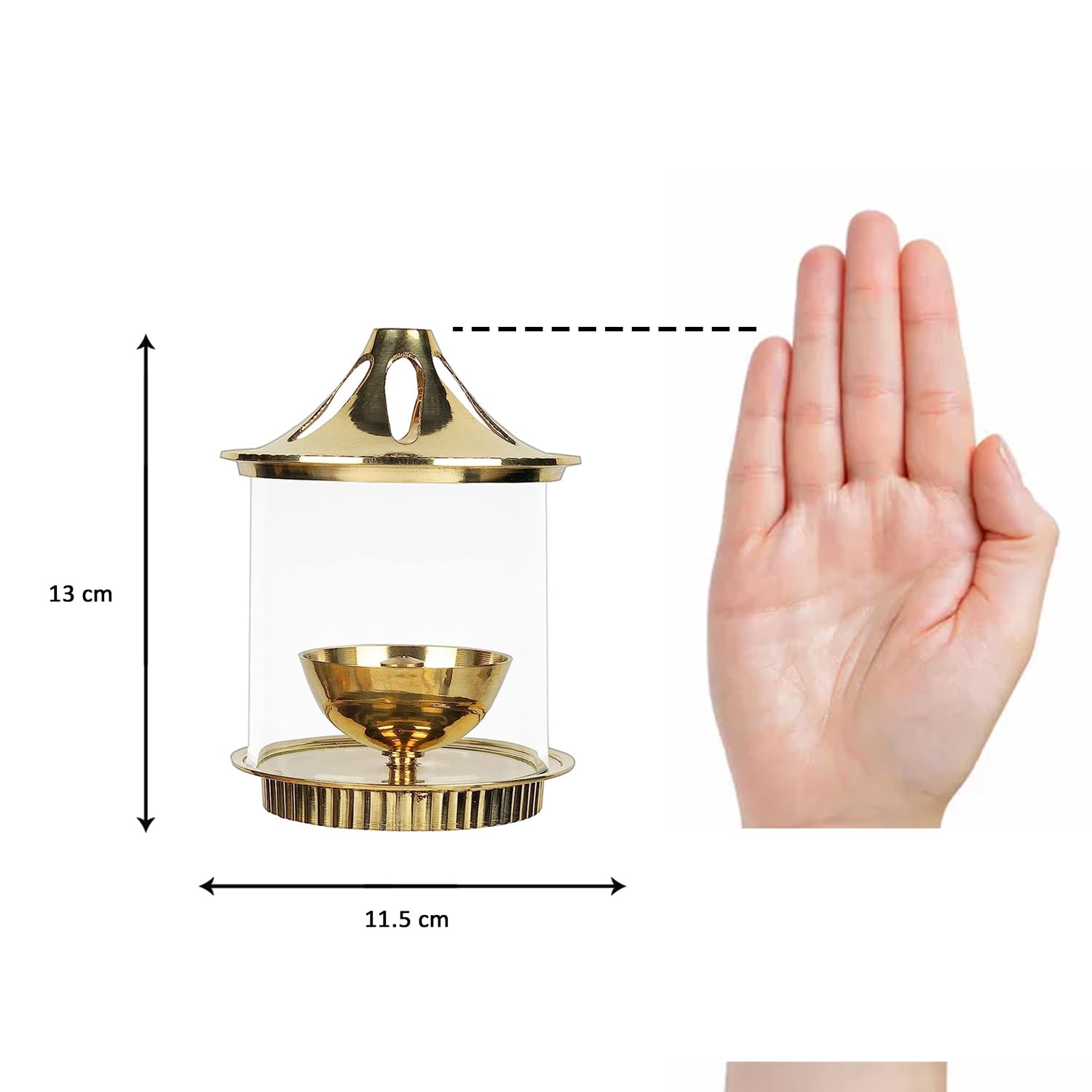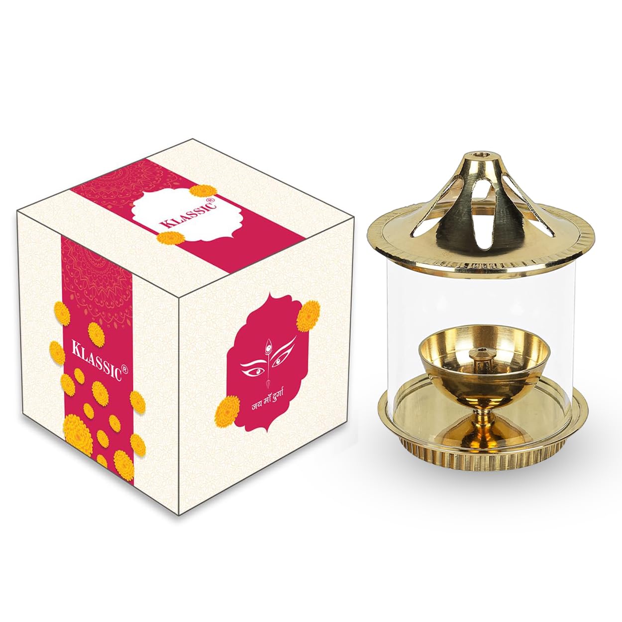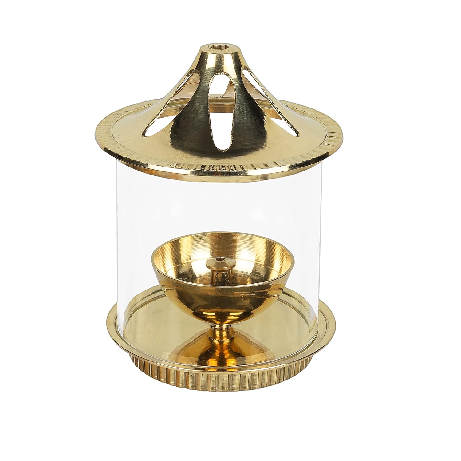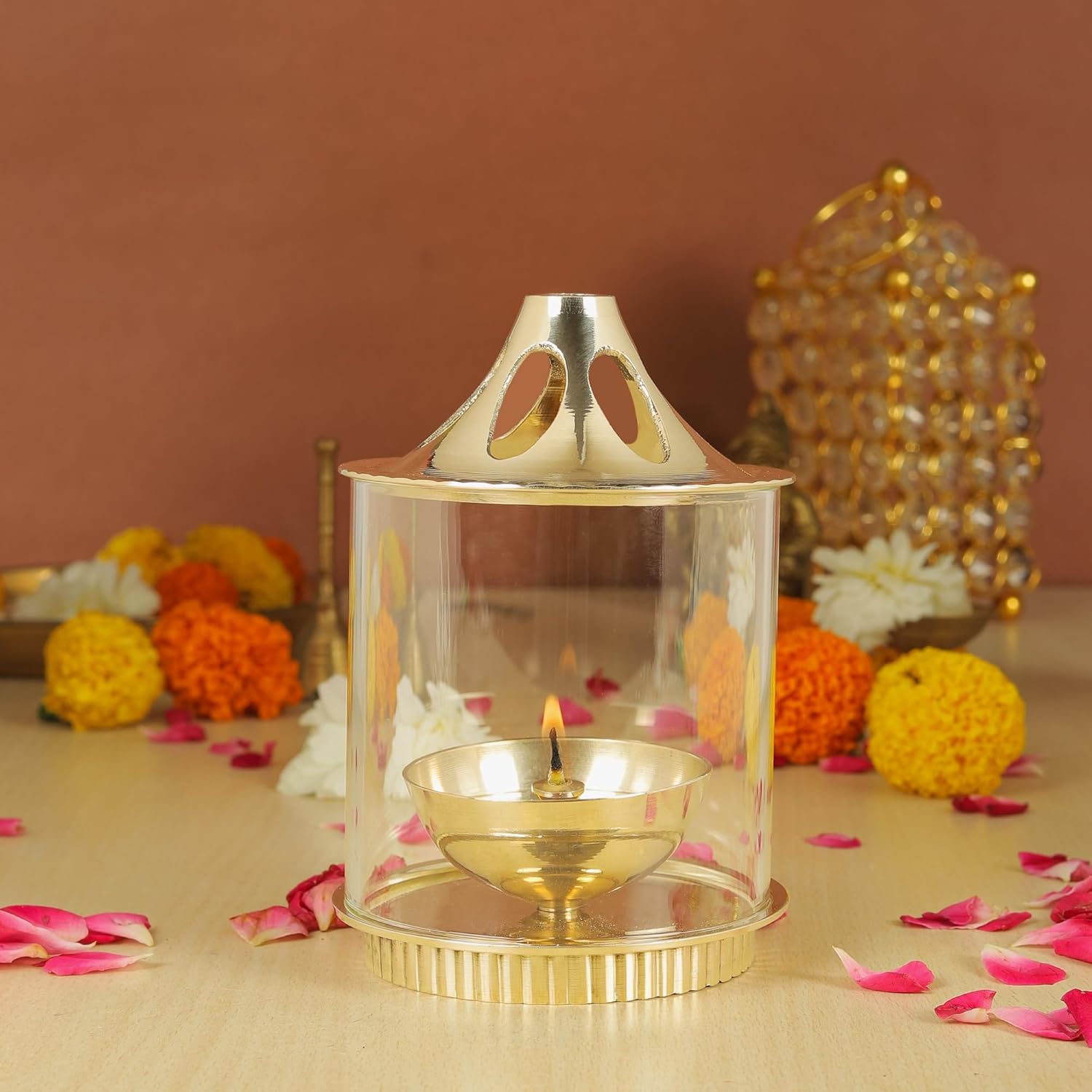 Klassic Brass Vachi Diya with Borosilicate Glass Shade – 5 Inch
