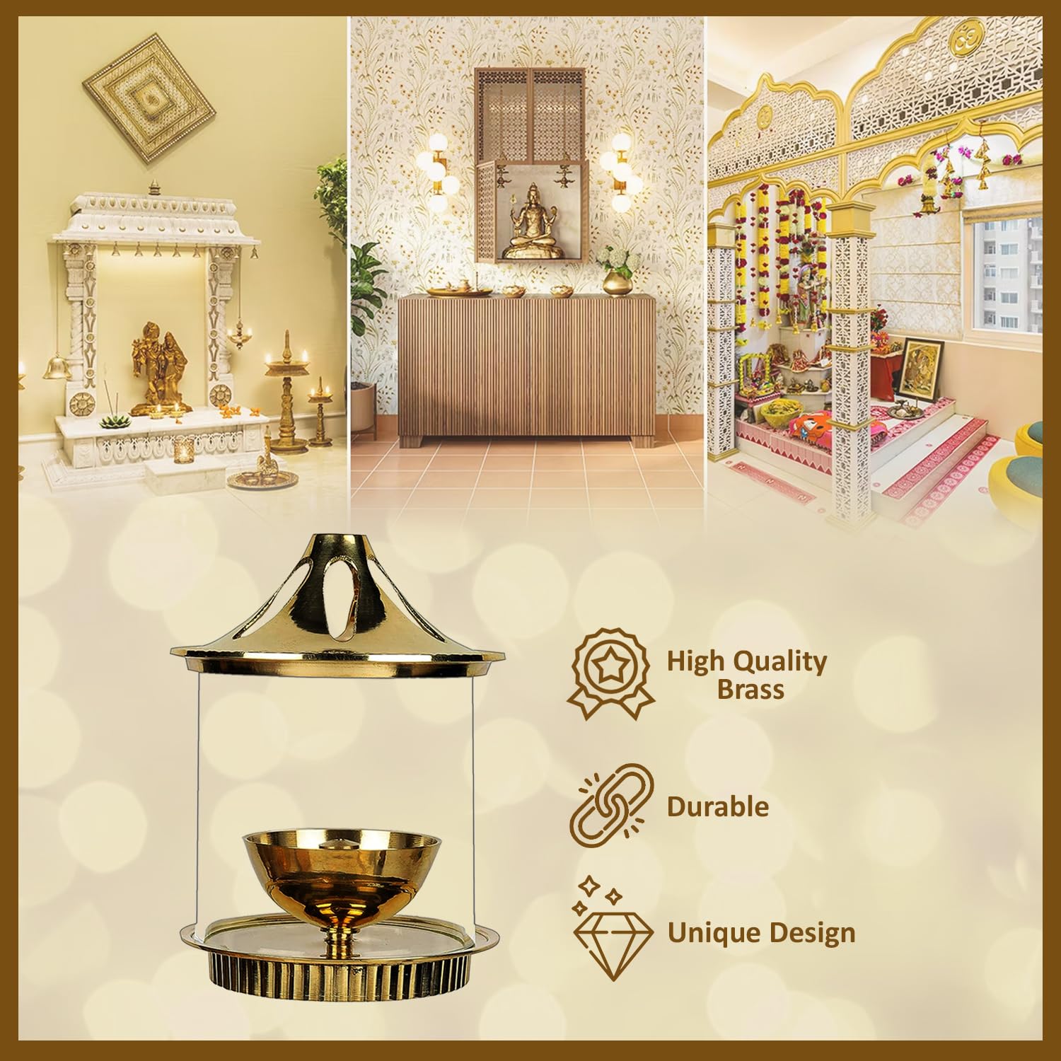 Klassic Vachi Diya, a blend of tradition and elegance. Crafted from high-quality brass with a borosilicate glass shade and a golden lid, this diya is designed to keep the jyoti protected and glowing longer. Its 5-inch cylindrical shape makes it a perfect fit for mandirs, pooja rituals, bedrooms, or living spaces, adding a touch of spirituality to your décor.