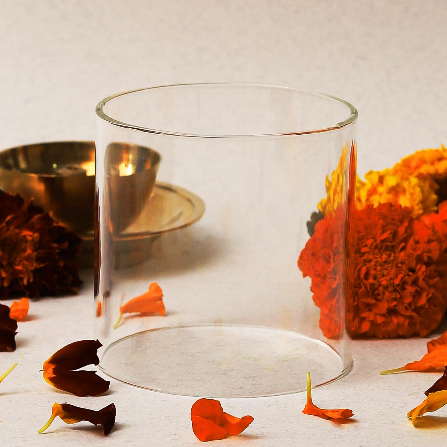 Klassic Medium Borosilicate Glass Cover for Swastik Diya protects flames from wind, ideal for tealights and LED candles