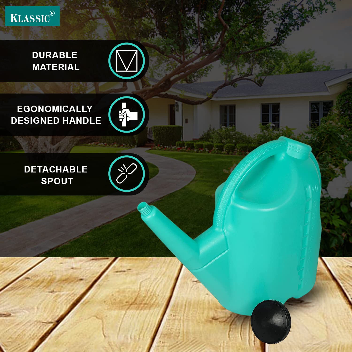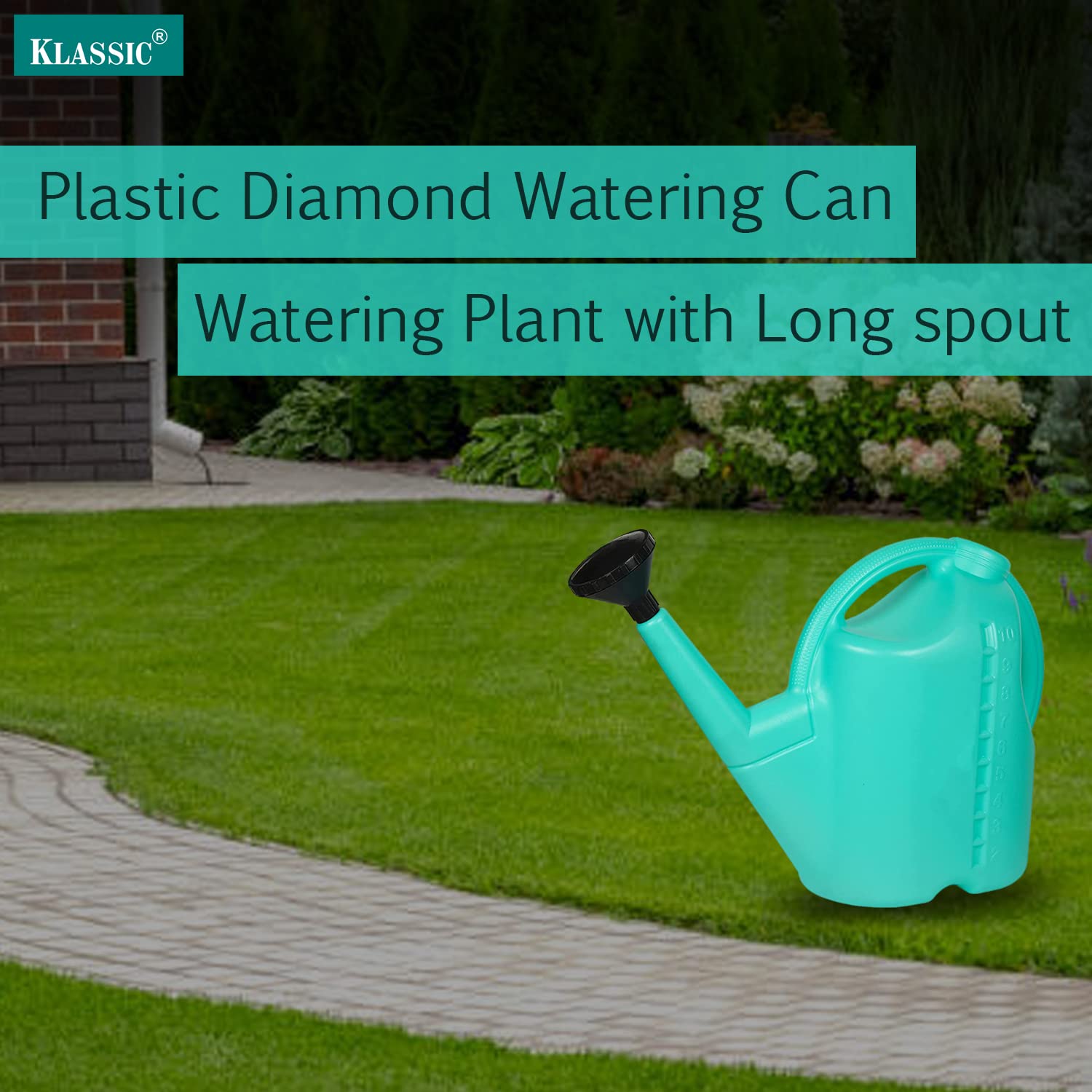 Klassic 10L Plastic Watering Can – Indoor & Outdoor Plants, Long Spout (Teal Green)