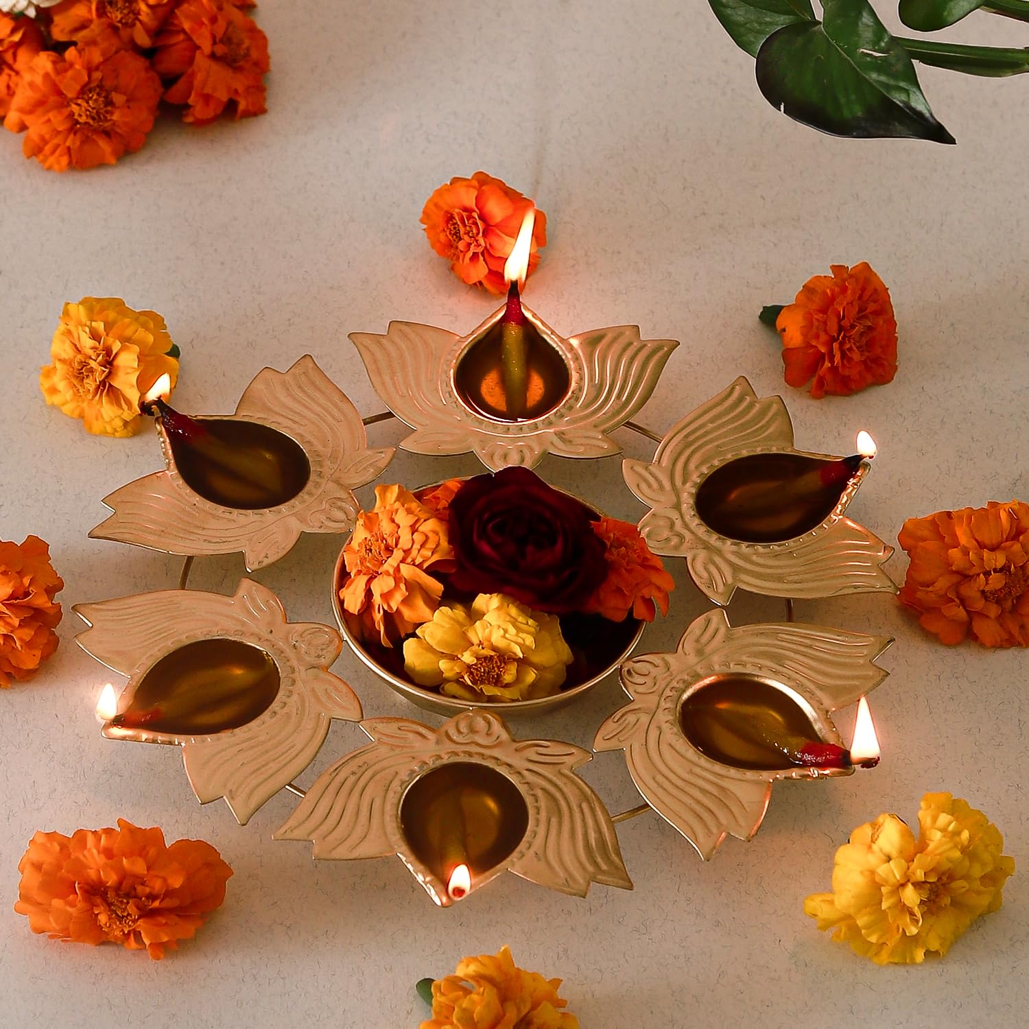 Klassic 6 Lotus Urli Bowl – Antique Metal Decor, Golden Finish