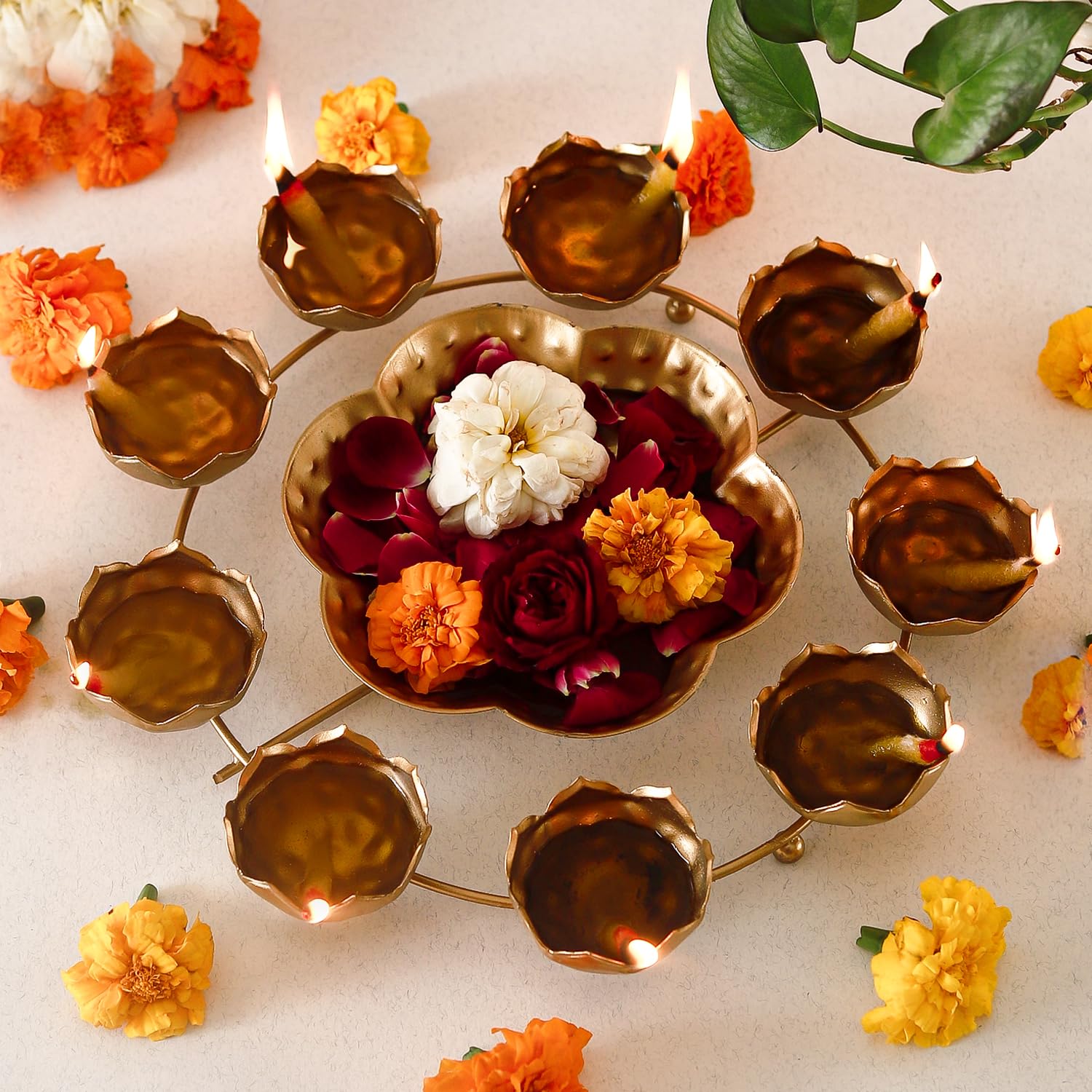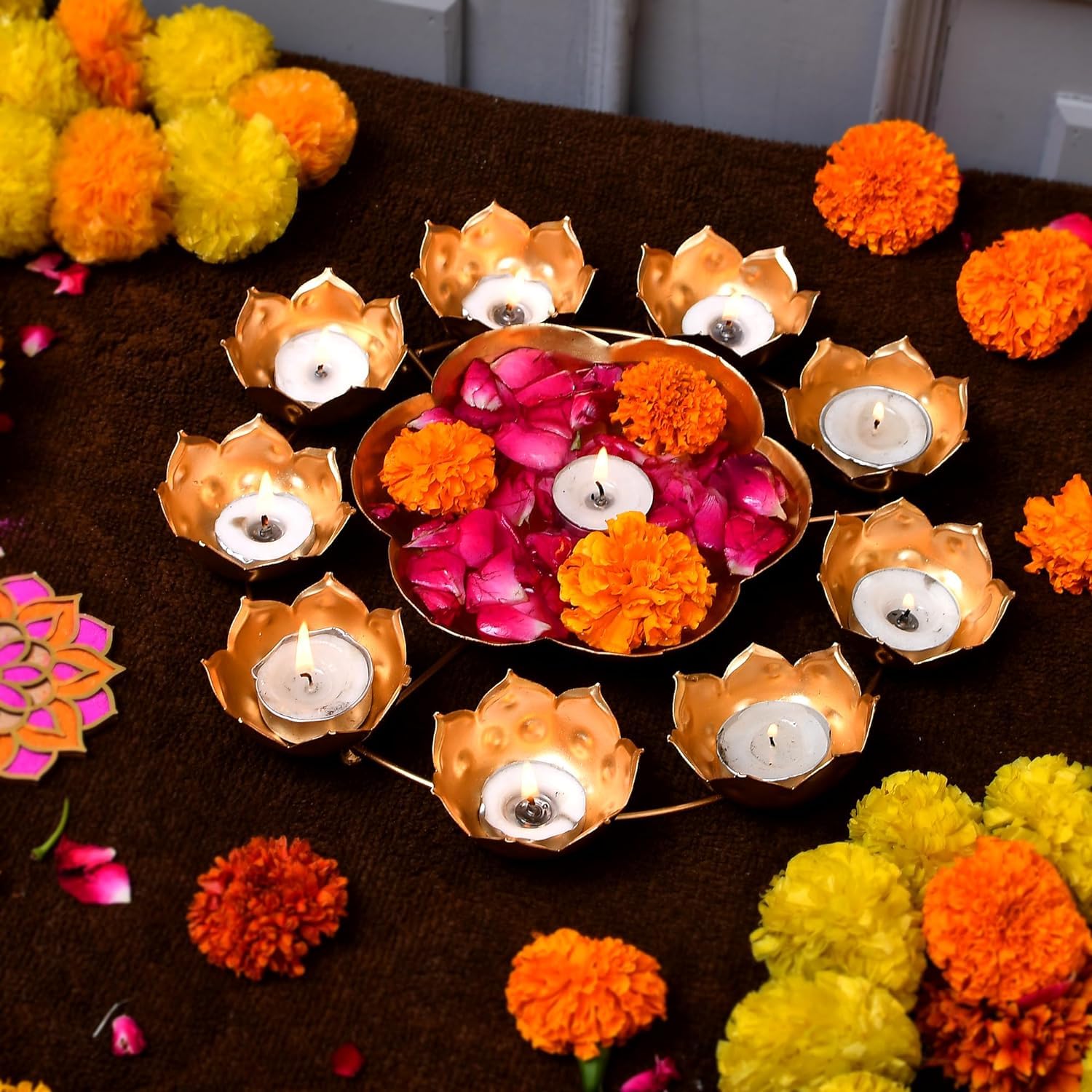 Klassic Antique 9 Lotus Urli Bowl in premium metal, perfect for home décor and festive celebrations. Ideal for Diwali, housewarming, and gifting purposes