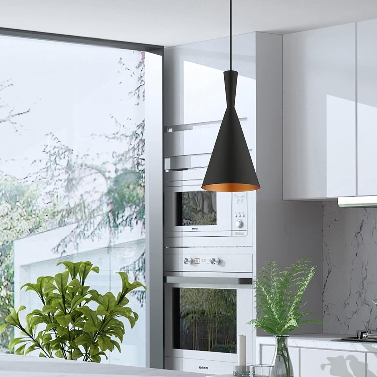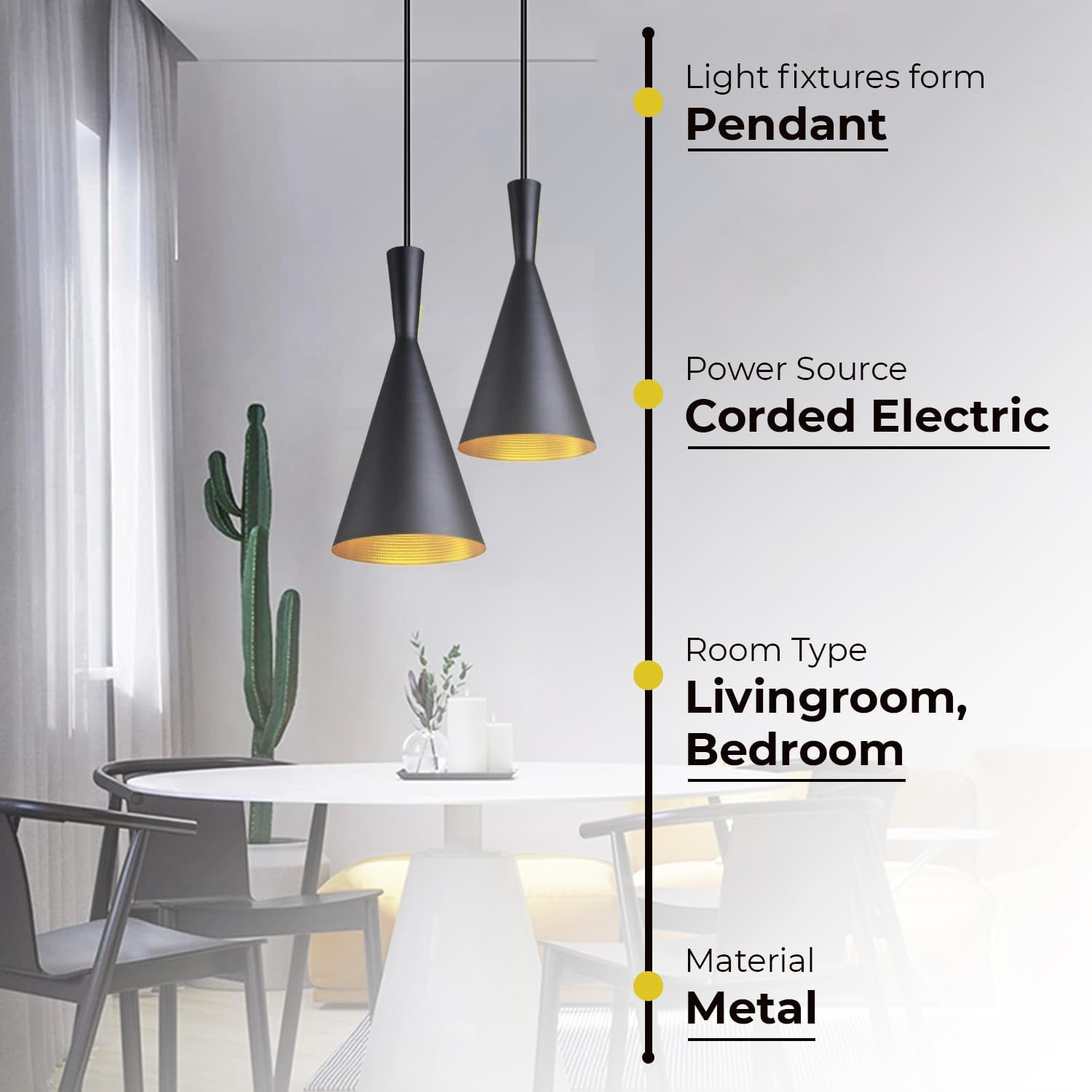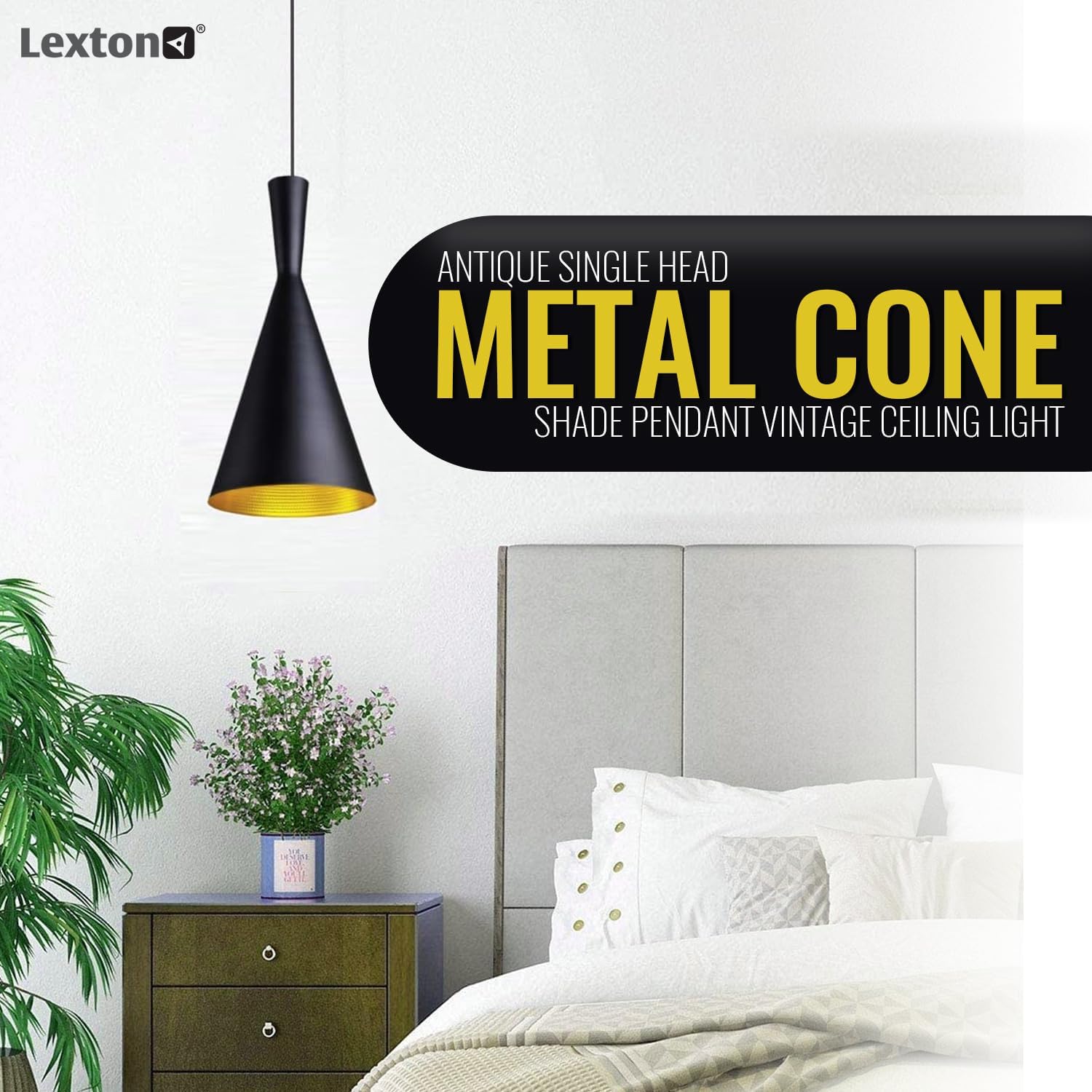 Lexton Antique Black Metal Cone Pendant Light – Bedroom & Kitchen Ceiling Lamp