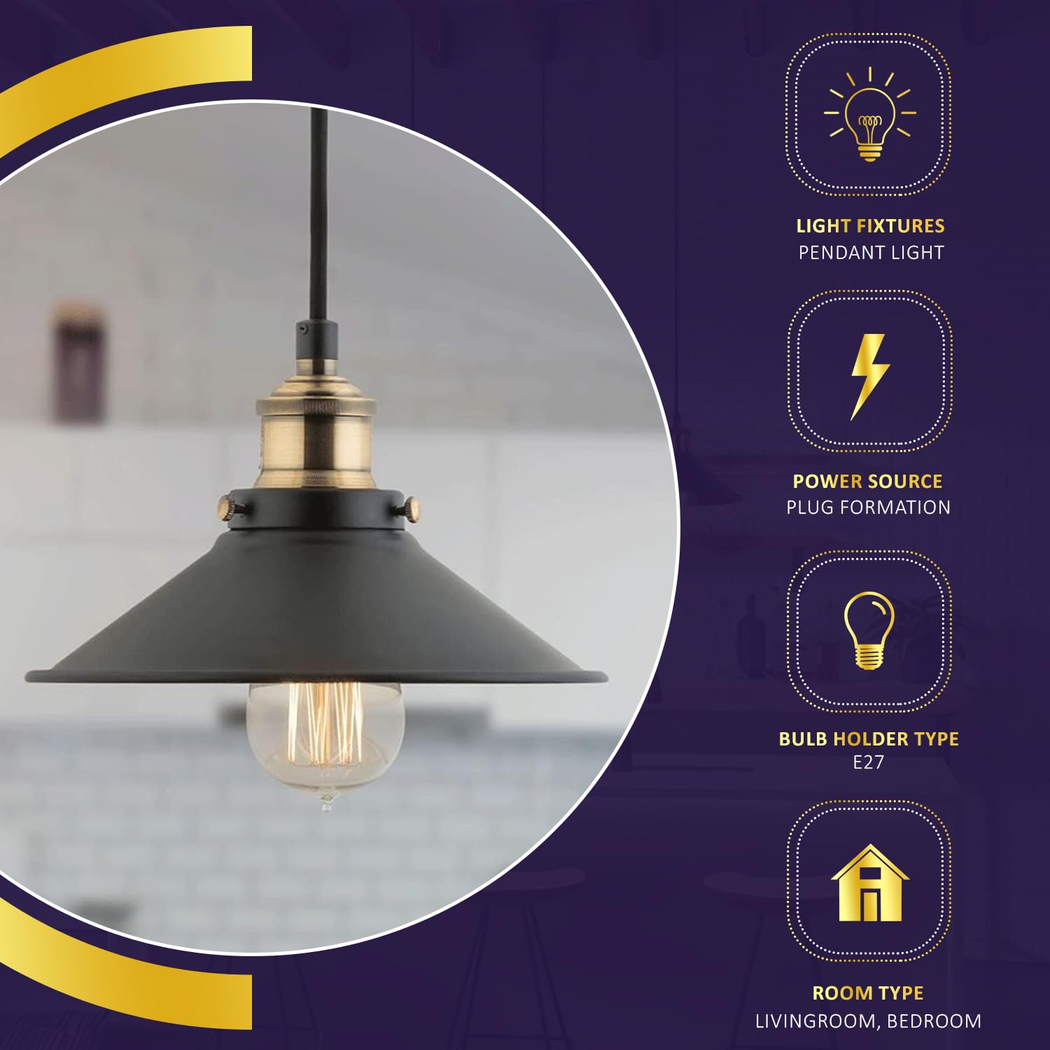Lexton Black Barn Cone Pendant Light – Metal Hanging Lamp