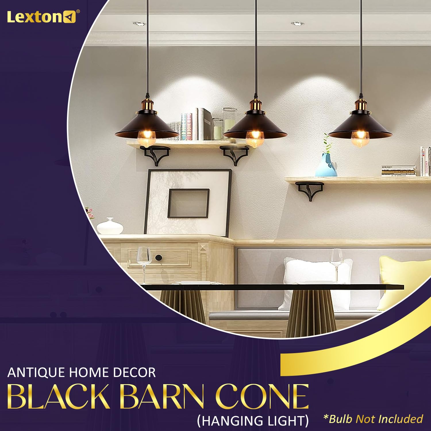 Lexton Black Barn Cone Pendant Light is a perfect blend of modern industrial design and functional lighting. Crafted from durable metal with a sleek black finish, this pendant lamp