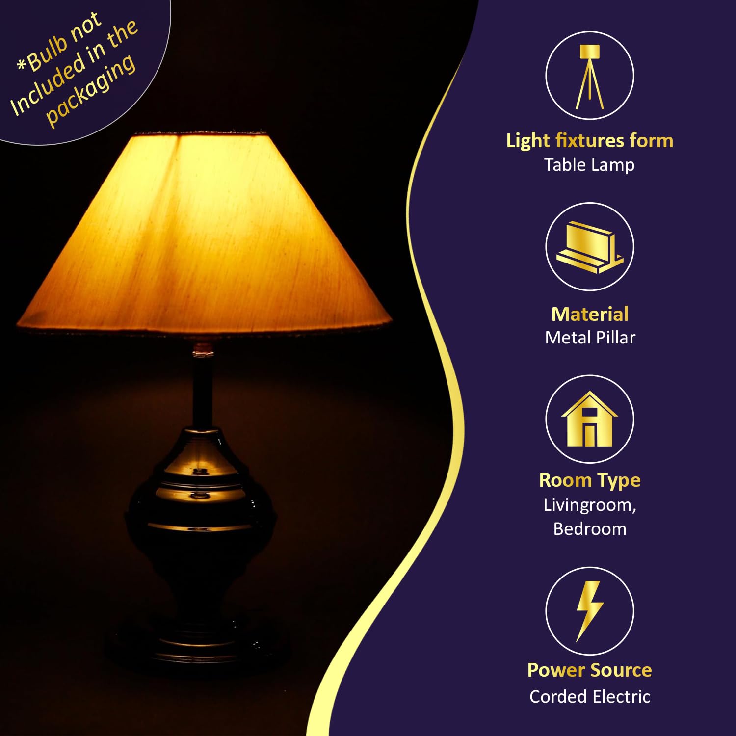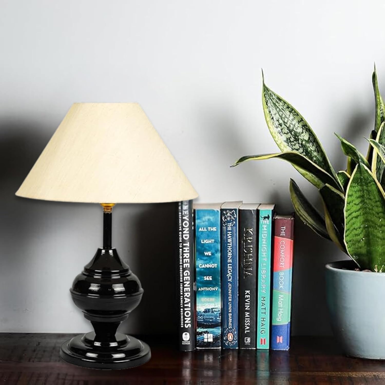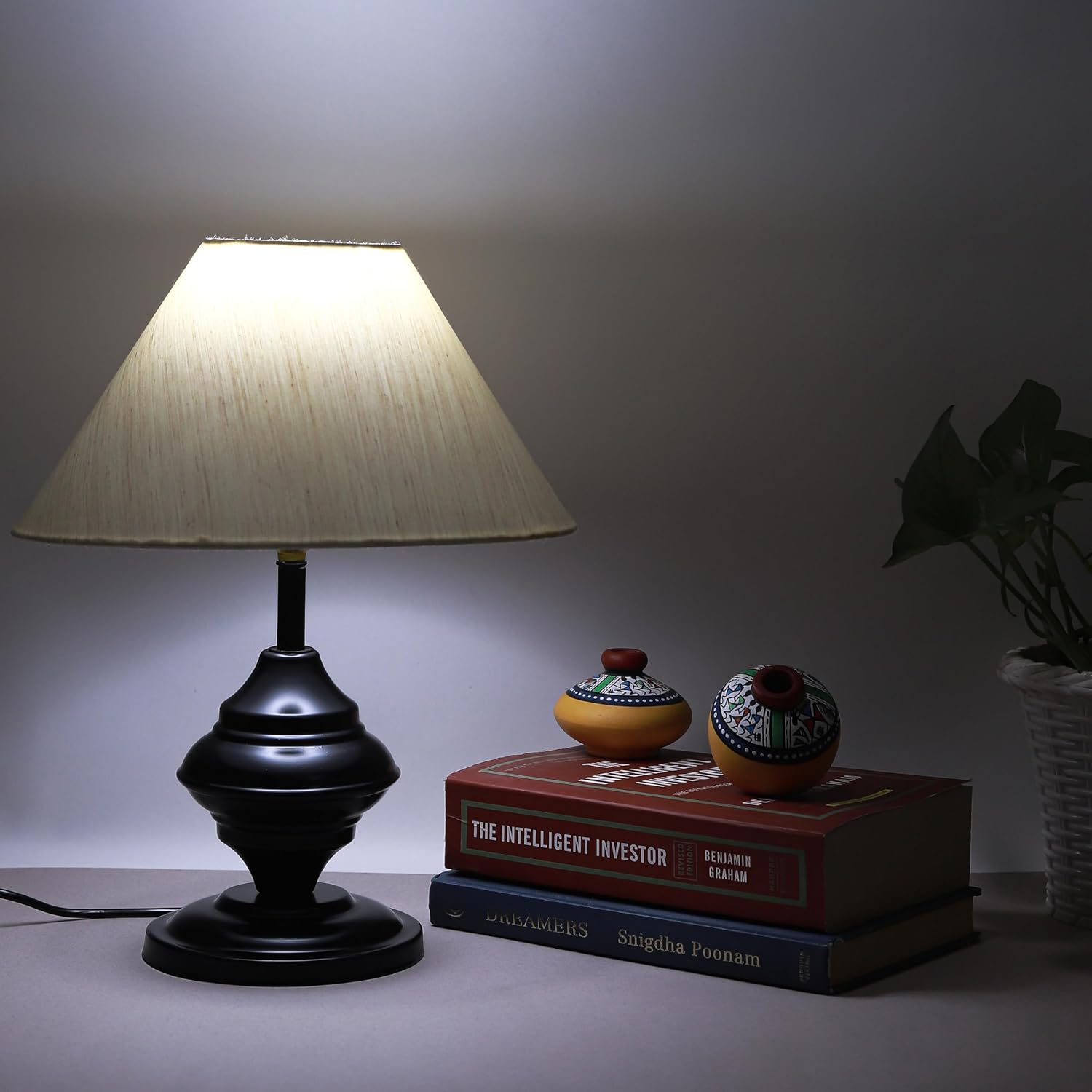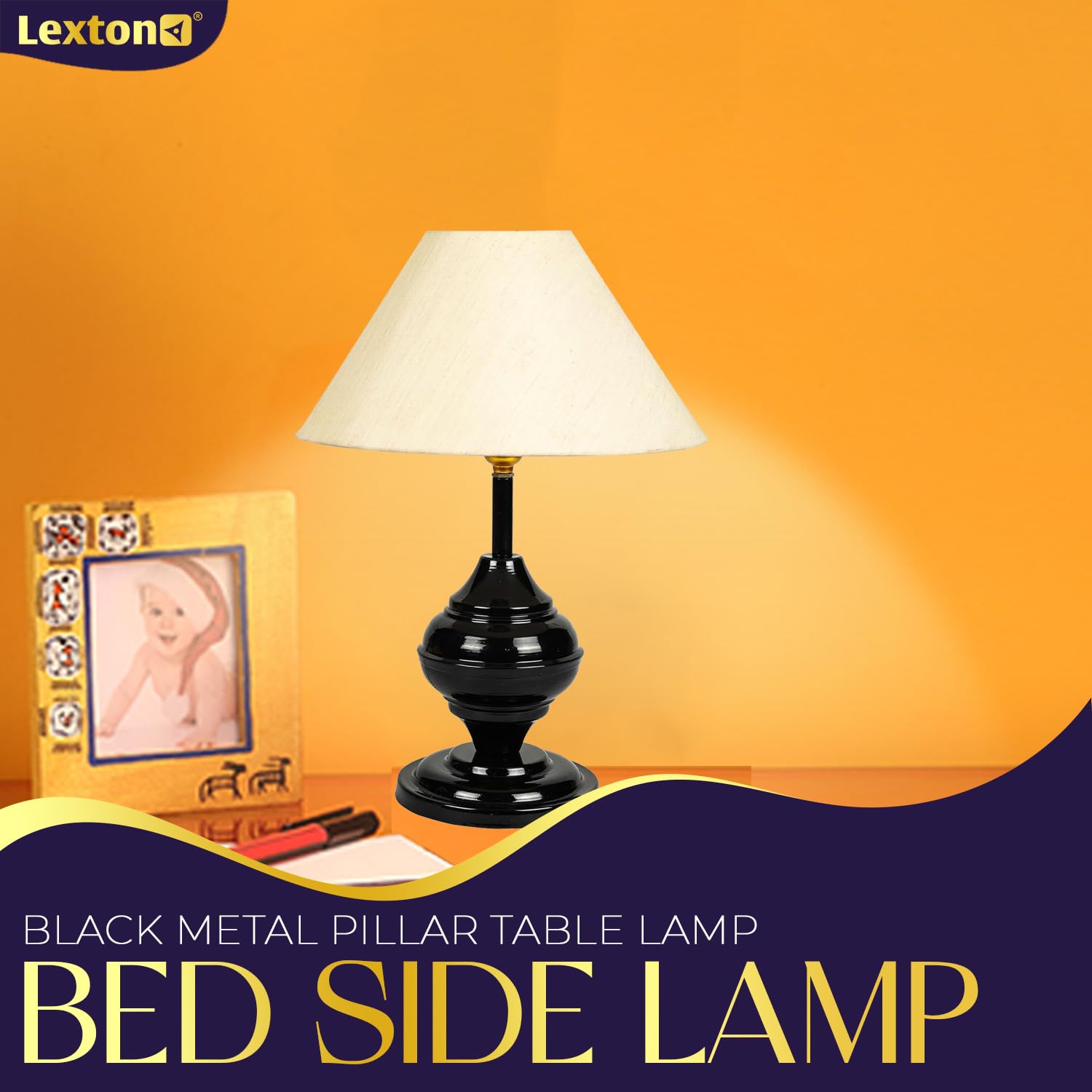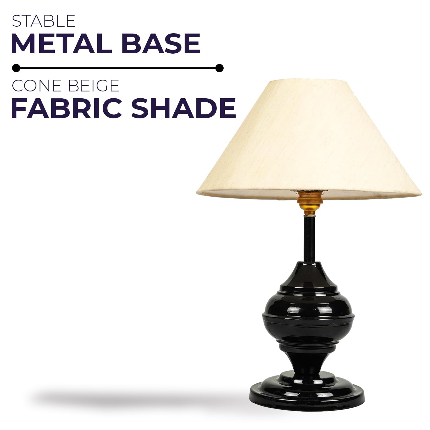 Lexton Black Metal Base Table Lamp with beige fabric shade adds elegance to your bedroom, living room, or study. Perfect for bedside, desk, or home décor.