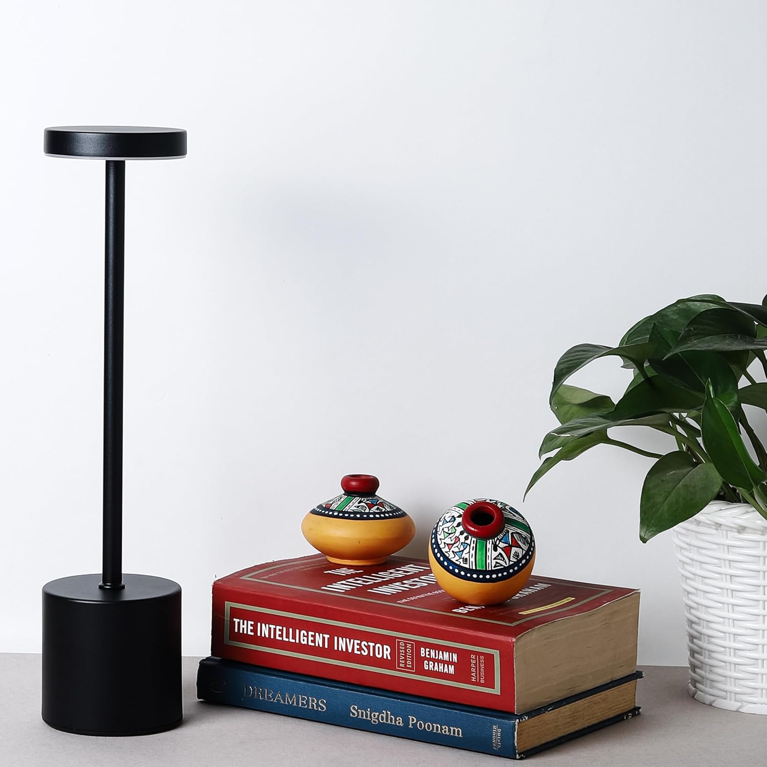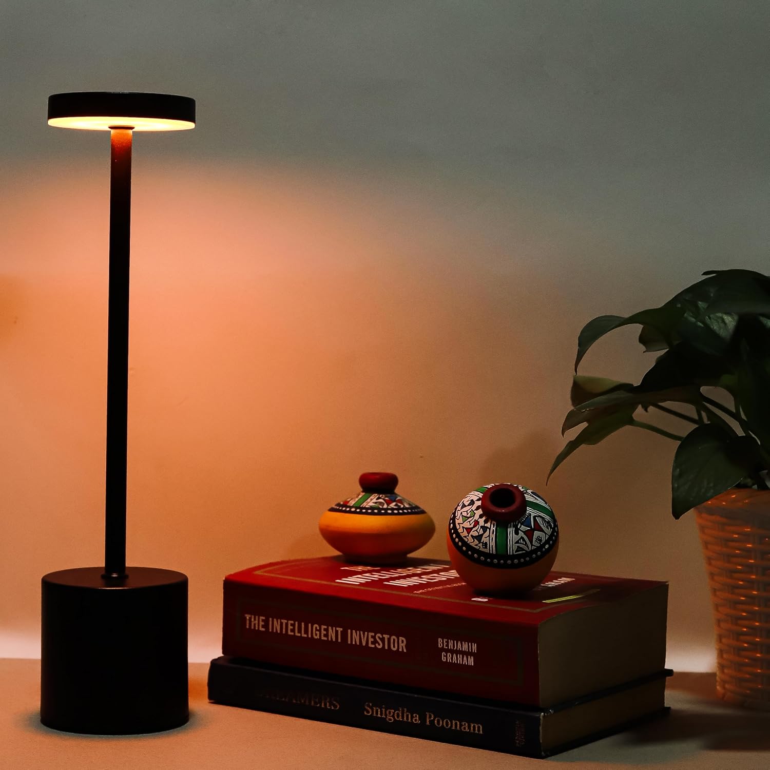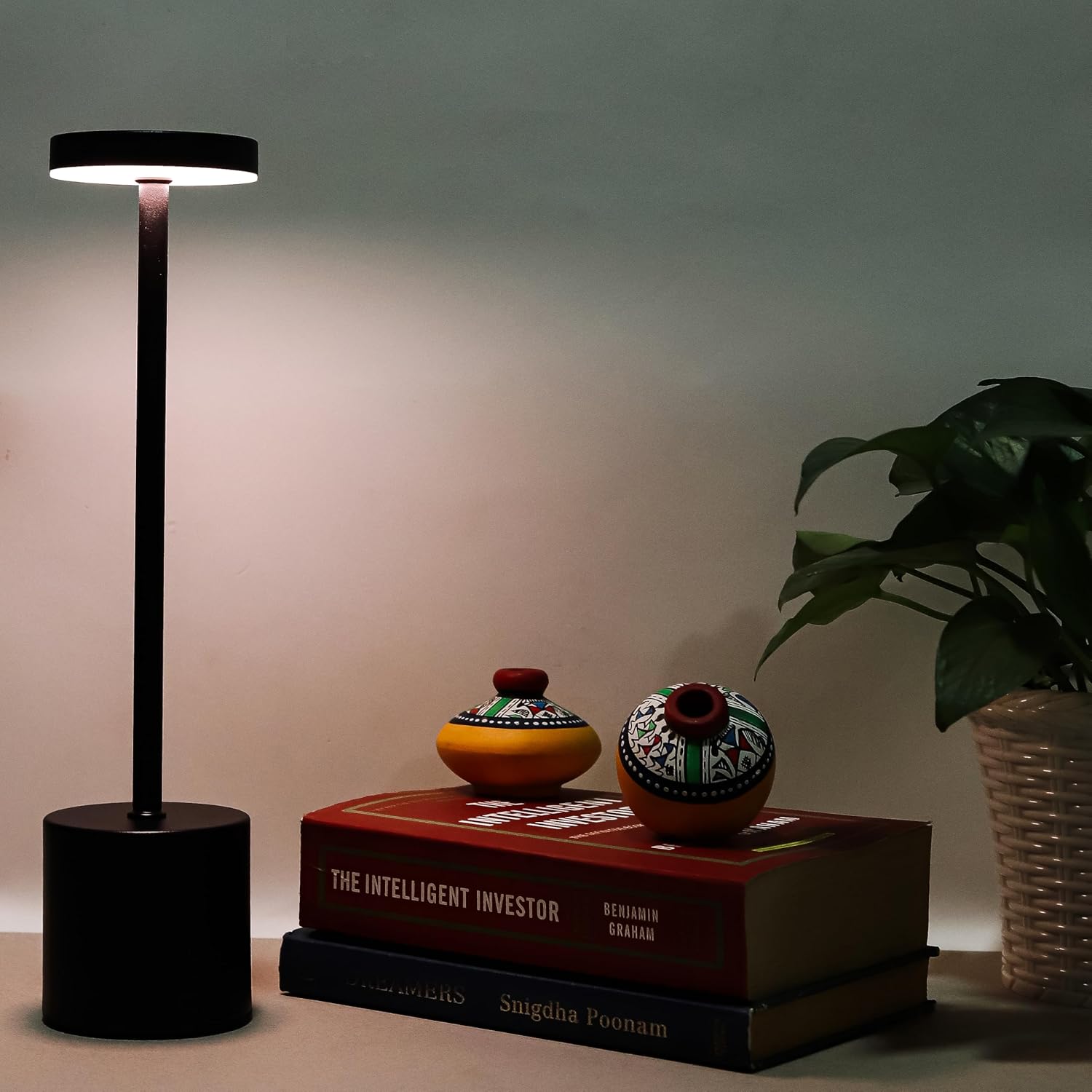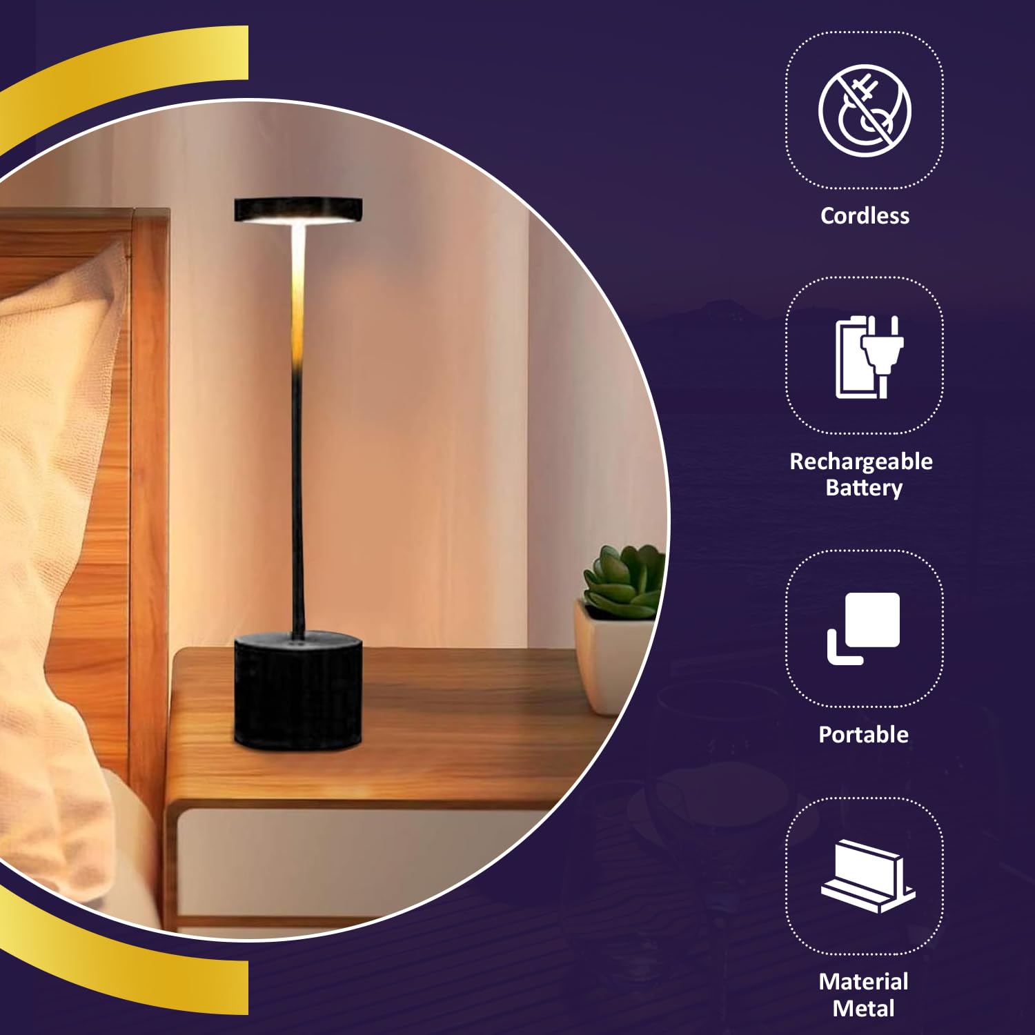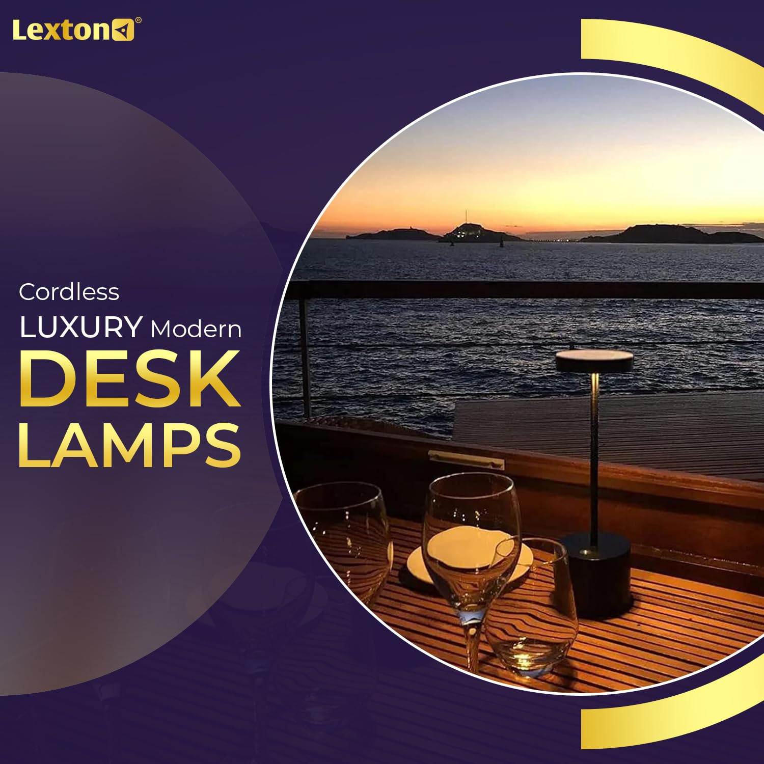 Lexton Creative Rechargeable Portable LED Table Lamp, designed to add a touch of luxury and modern elegance to any space. Featuring a sleek black cordless design, this lamp is perfect for restaurants, romantic dinners, living rooms, or bedside lighting.