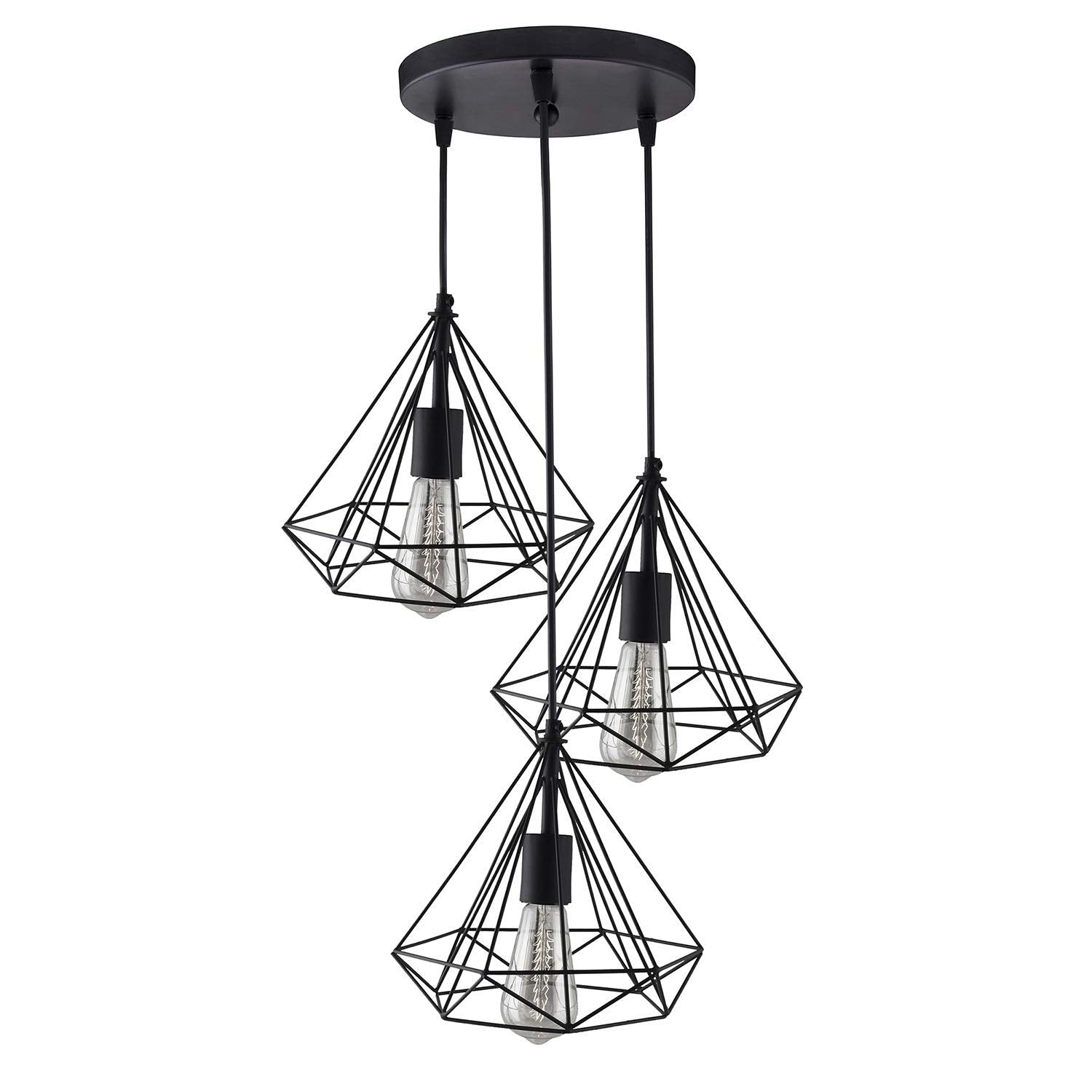 Lexton Diamond Cluster Pendant Light. Featuring a stylish black finish and elegant diamond-shaped design, this hanging ceiling chandelier adds a modern and luxurious touch to any room
