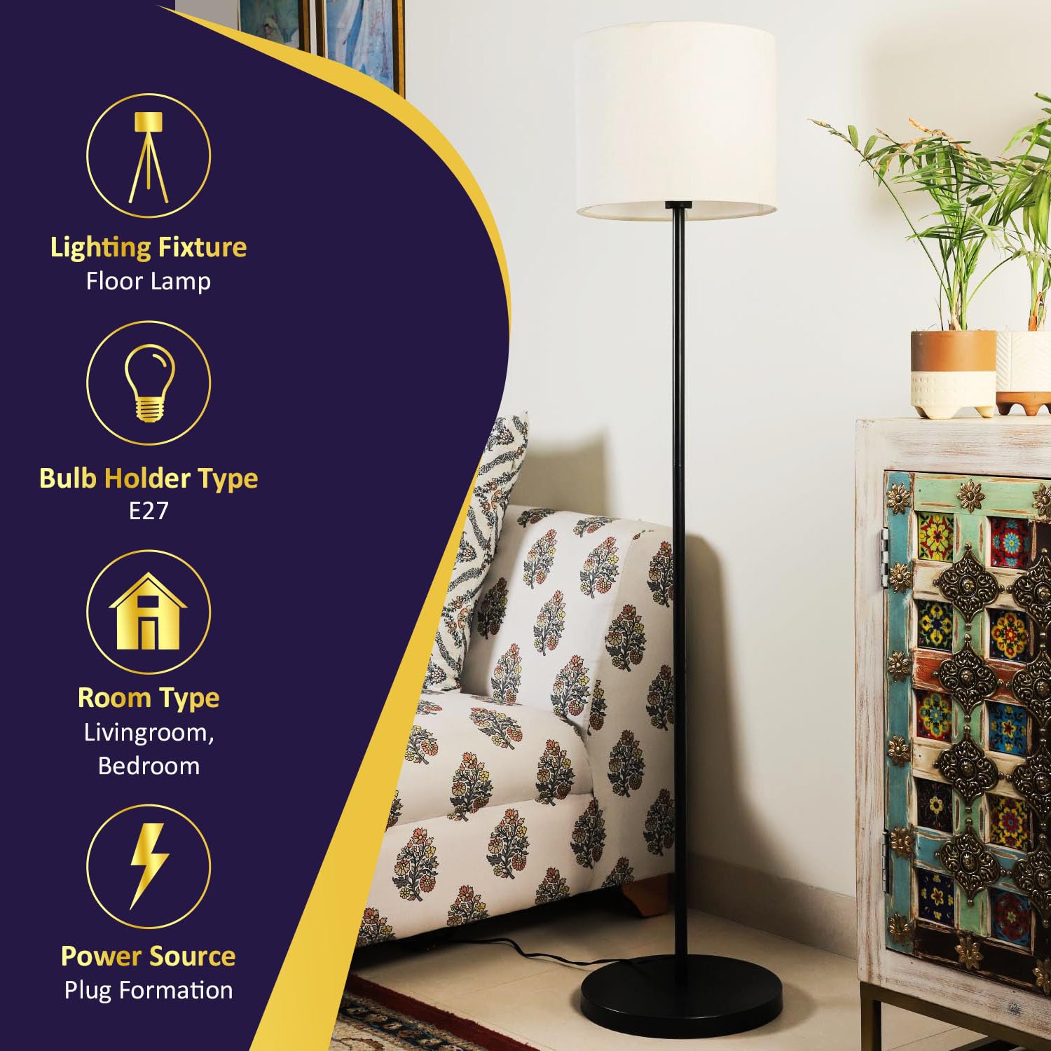 Lexton Eco DIY Metal Floor Lamp with White Shade – Black
