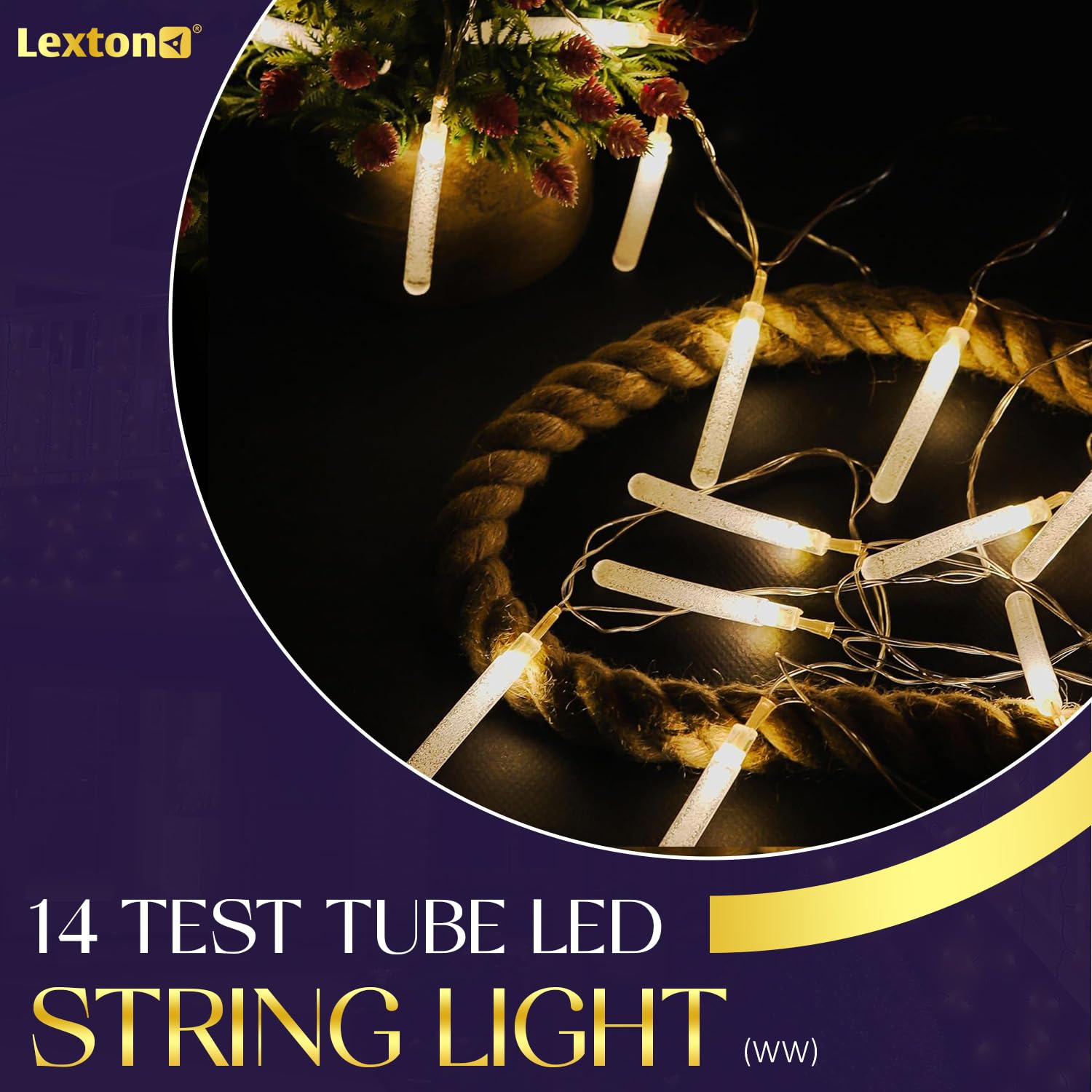 Lexton 14 Test Tube LED String Light (Warm White) features 14 test tube-shaped LED lights that emit a warm, soothing glow.