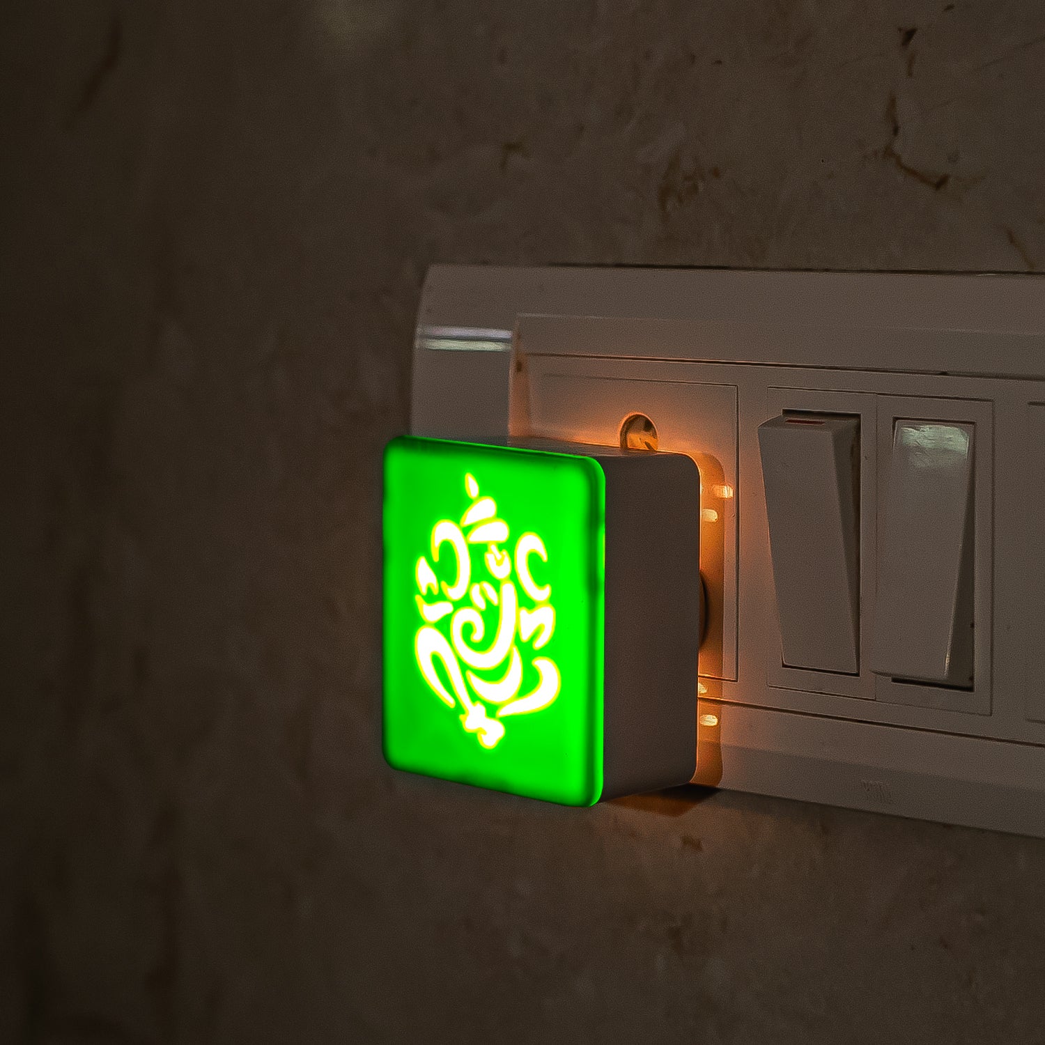 Lexton Ganesh Ji LED Night Lamp. Featuring a beautiful image of Lord Ganesha, this lamp emits a soothing warm white glow that creates a peaceful and spiritual ambiance in any space.