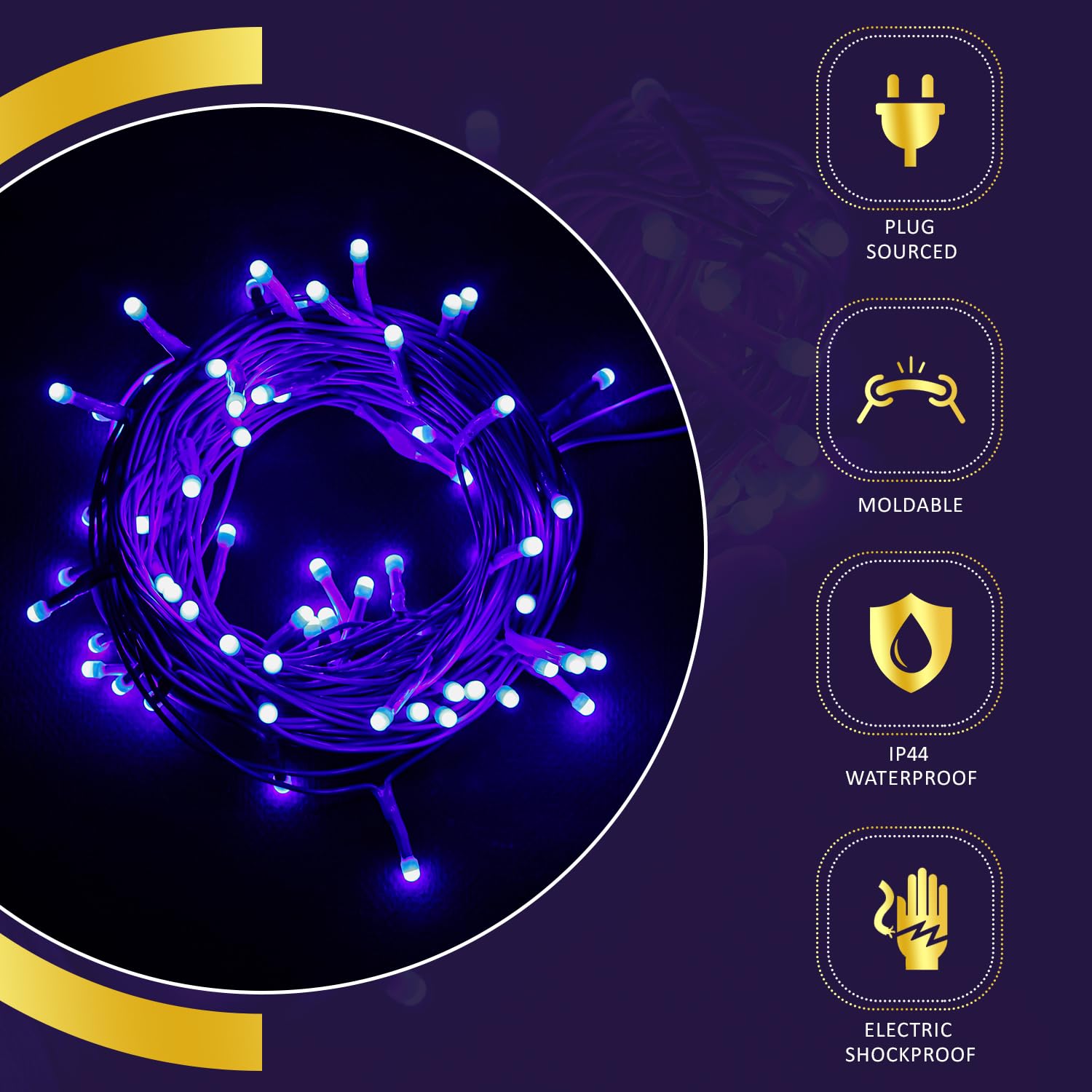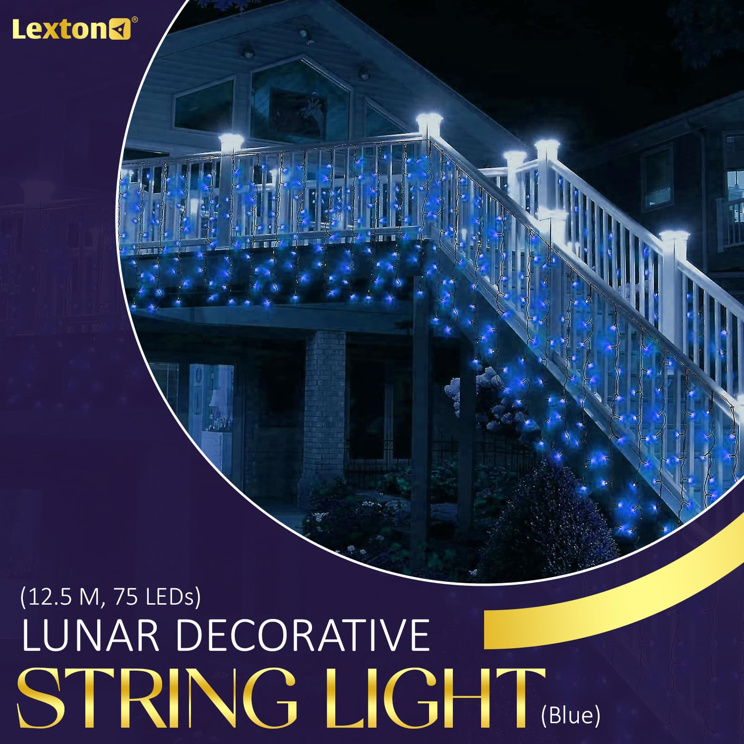 Lexton Lunar Decorative String Light, a perfect blend of style and brightness. Featuring 75 vibrant blue LEDs on a 12.5-meter long string, this plug-in fairy light is designed to add a magical glow