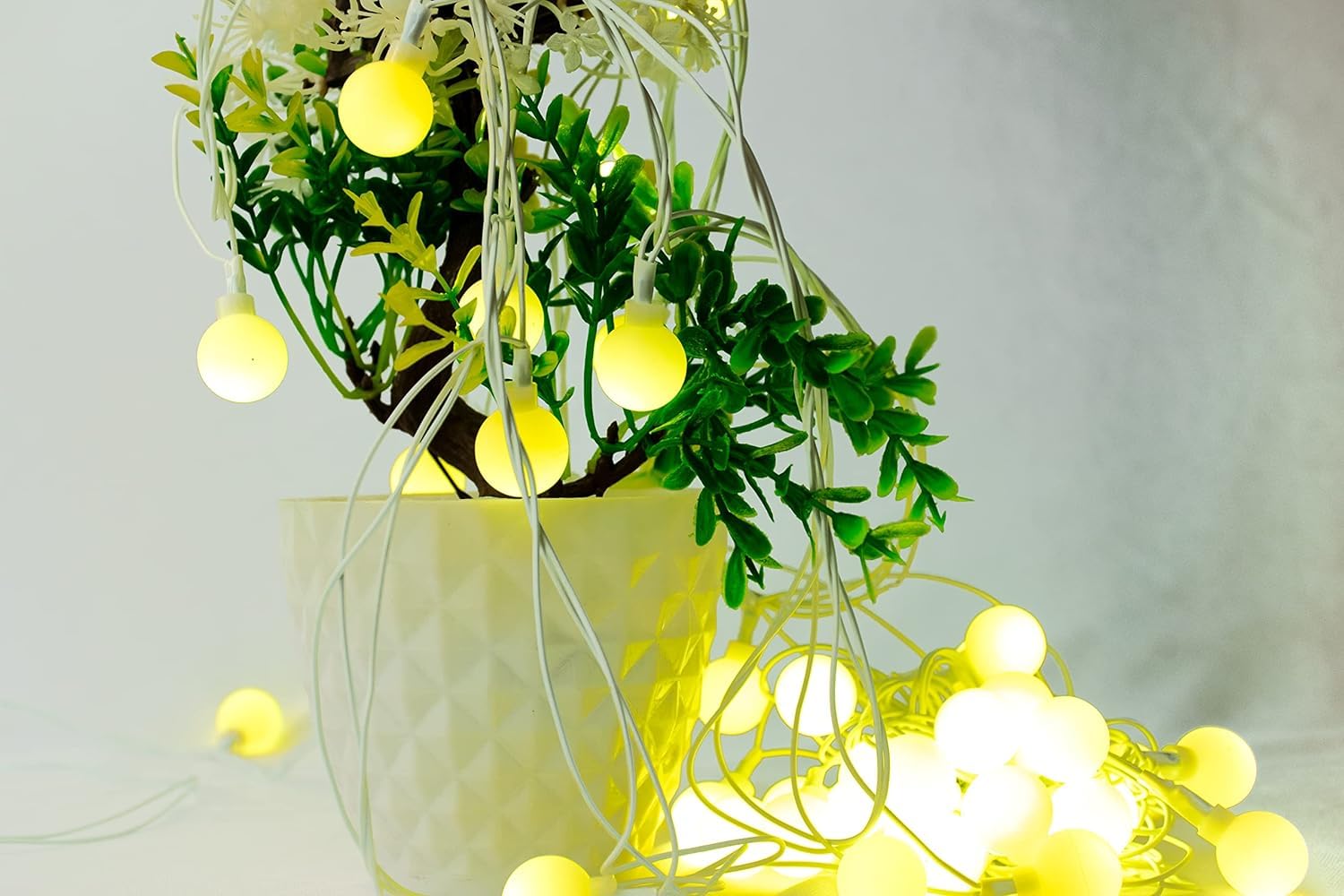 Lexton Milky Ball String Lights. Featuring 16 LED milky ball bulbs on a 2-meter long string, these decorative lights emit a soothing warm white glow, perfect for both indoor and outdoor use