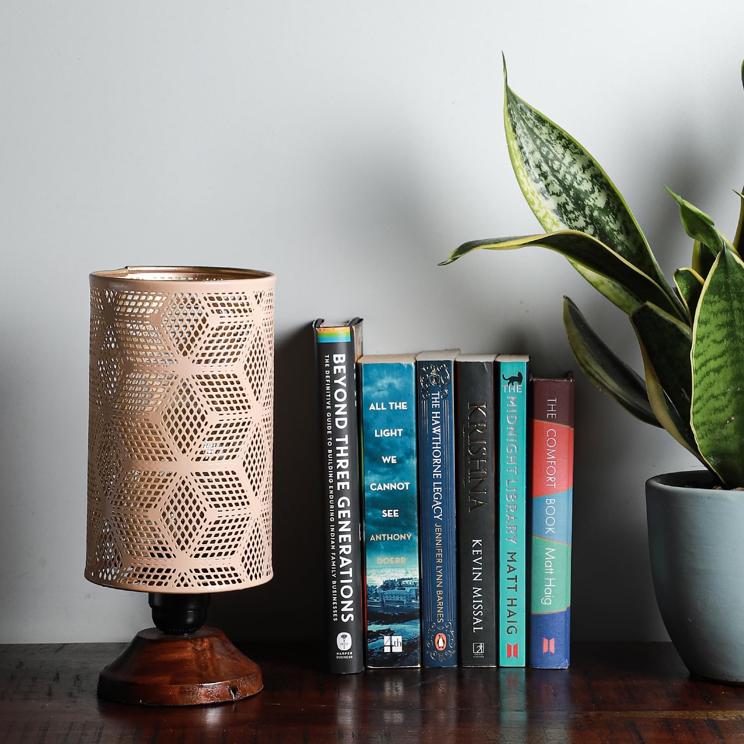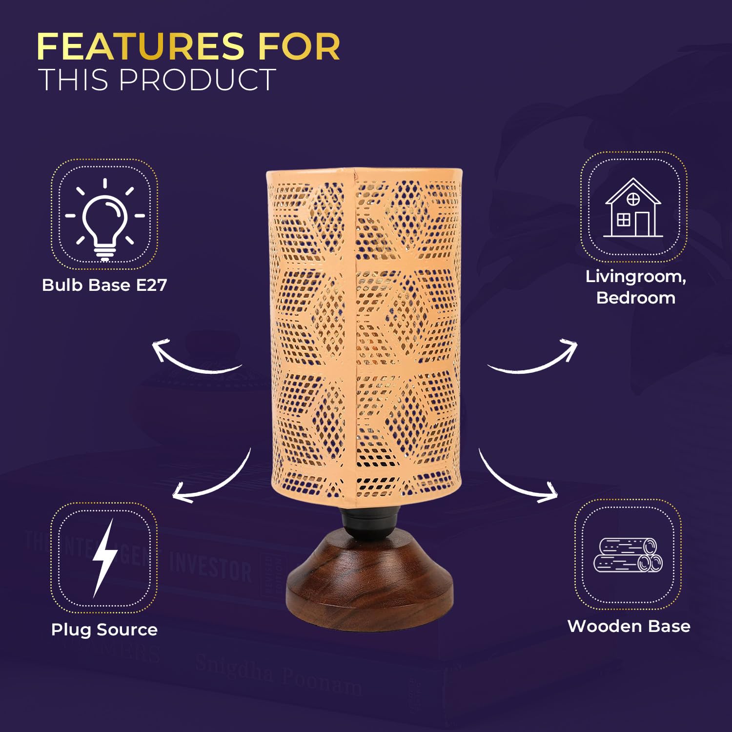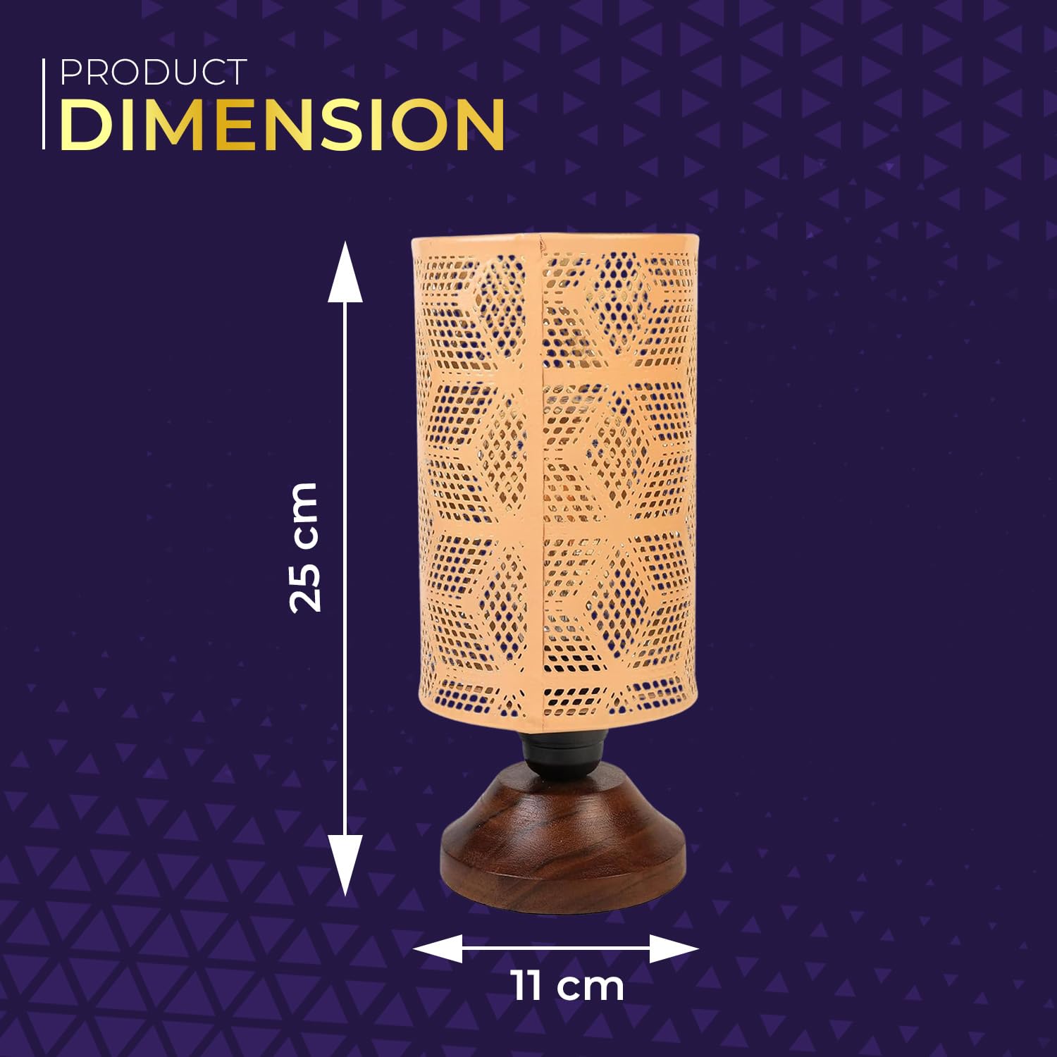 Lexton Moroccan Style Hand-Etched Iron Made Bedside Table lamp | Black Metal Round Frame, E27 Bulb Holder, Wooden Stand, Corded | Suitable for Home Decoration Office (Pack of 1, Bulb Not Included)