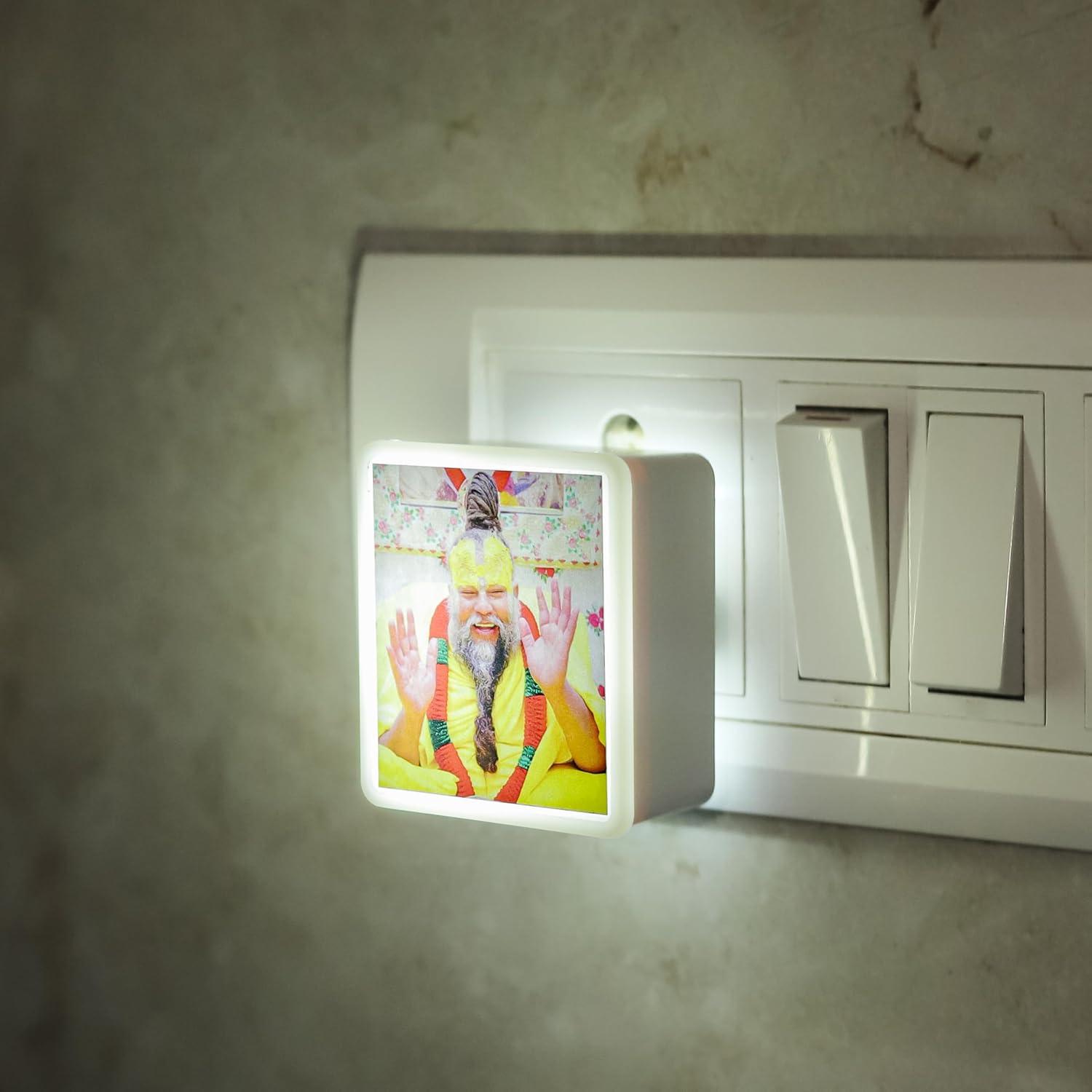 Lexton Premanand Ji Maharaj LED Night Lamp. Warm white 0.5W light creates a serene spiritual ambiance