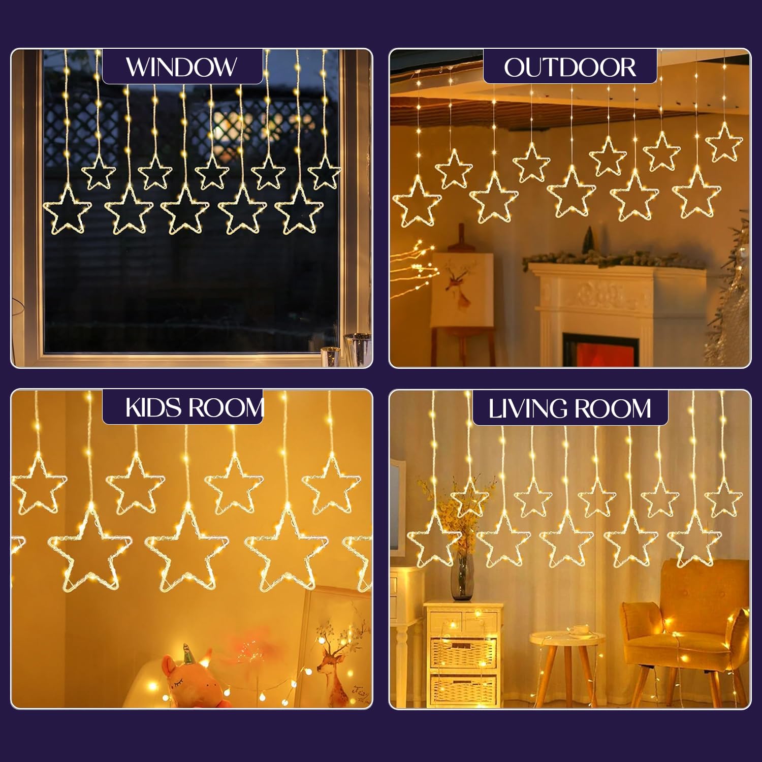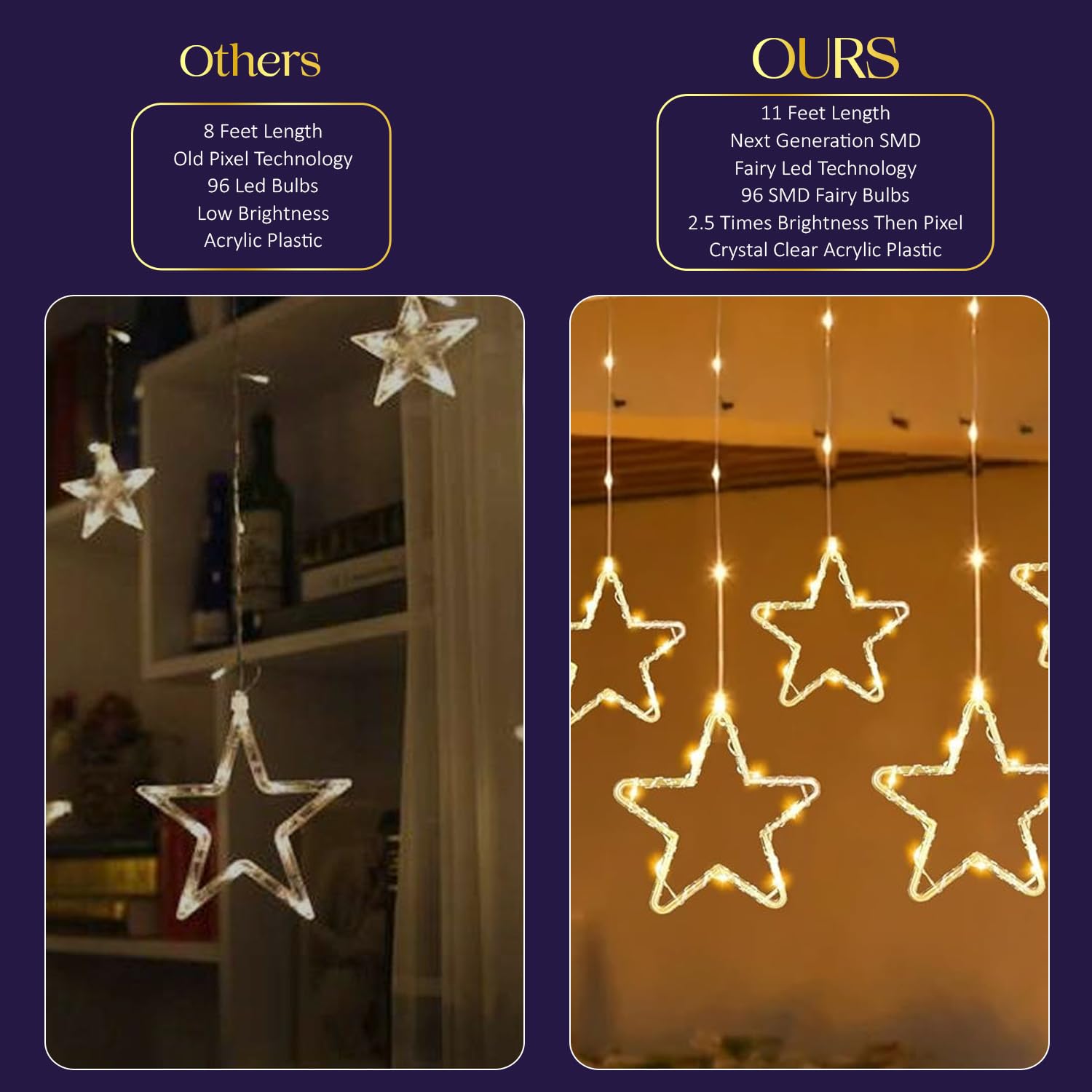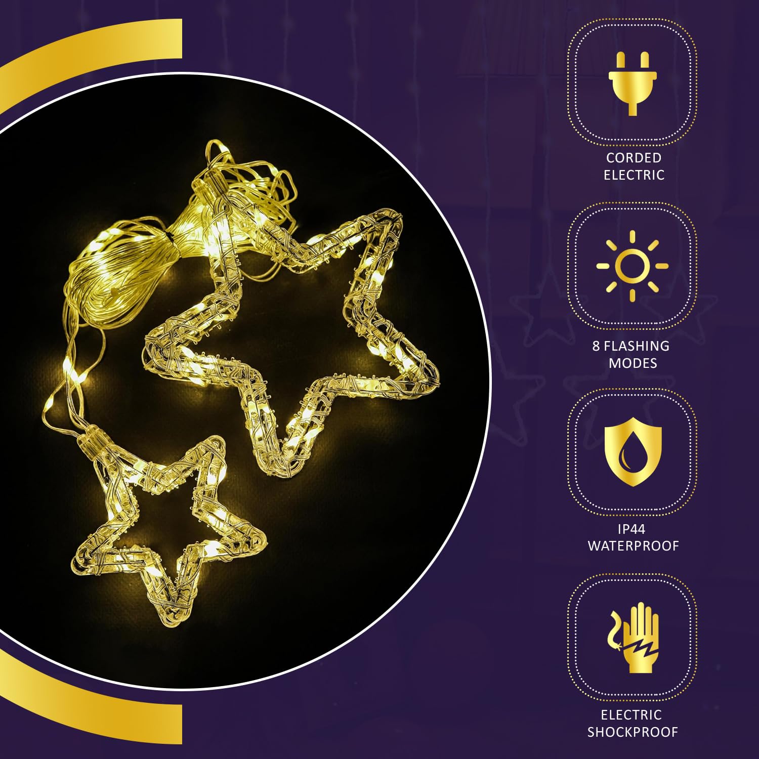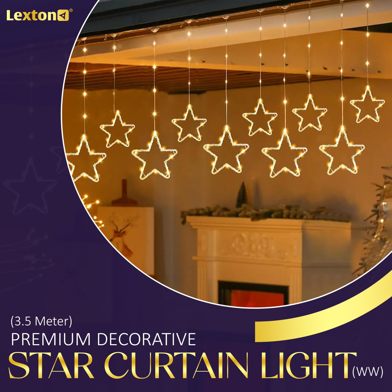 Lexton Star Curtain LED Light. Featuring 3.5 meters of warm white LEDs and 8 dynamic flashing modes, it’s perfect for Christmas, Diwali, parties, and festive decorations