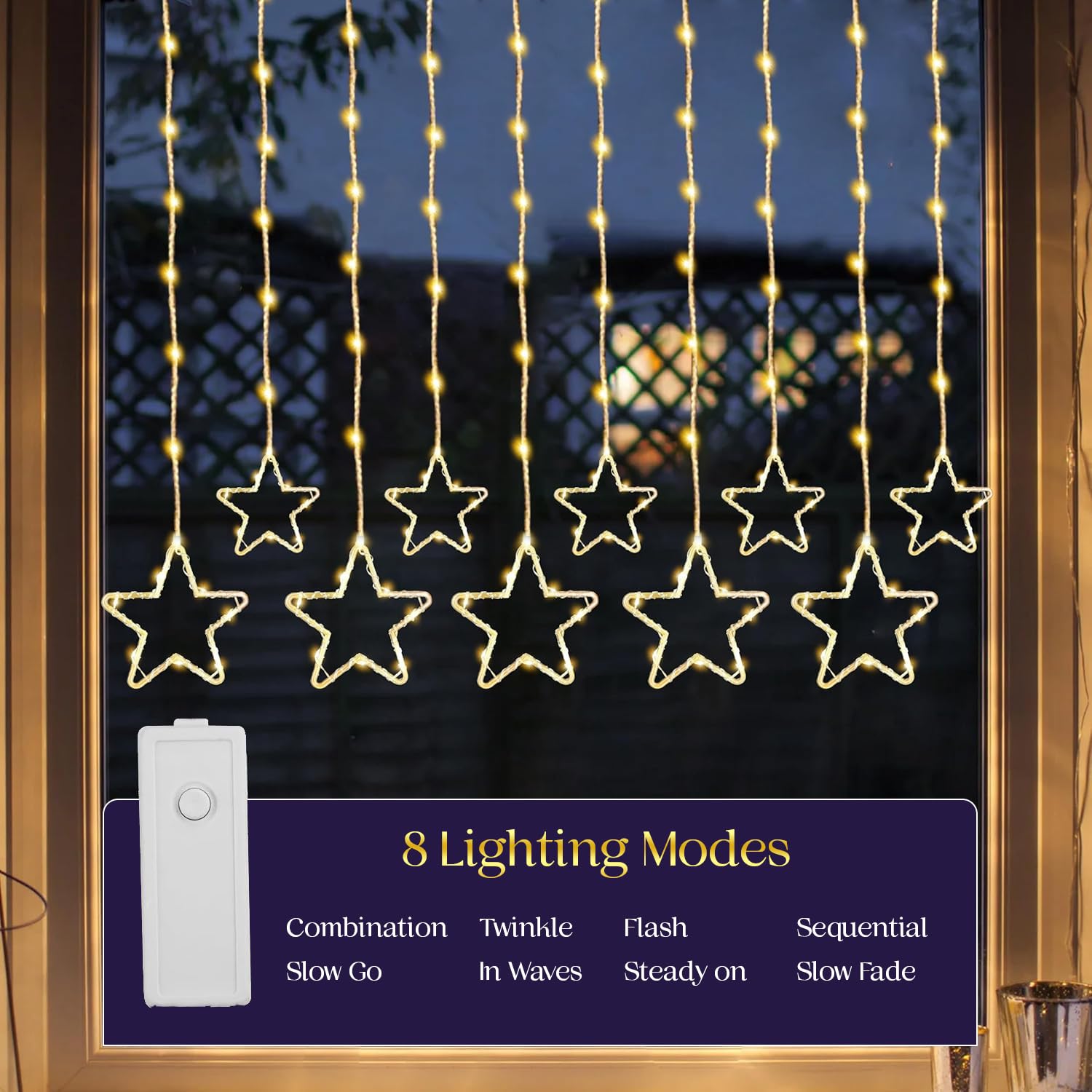 Lexton 3.5m Star Curtain LED Light – 8 Modes, Warm White