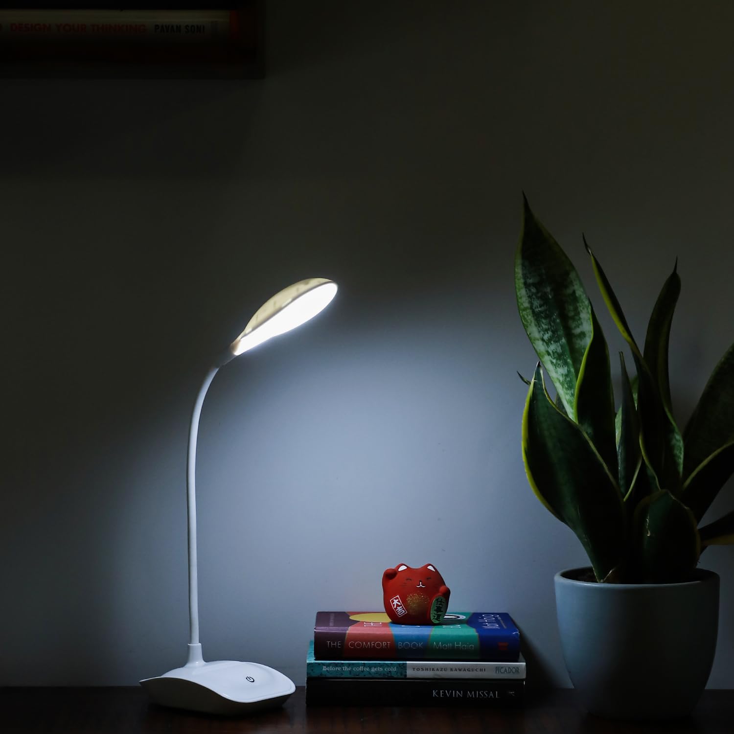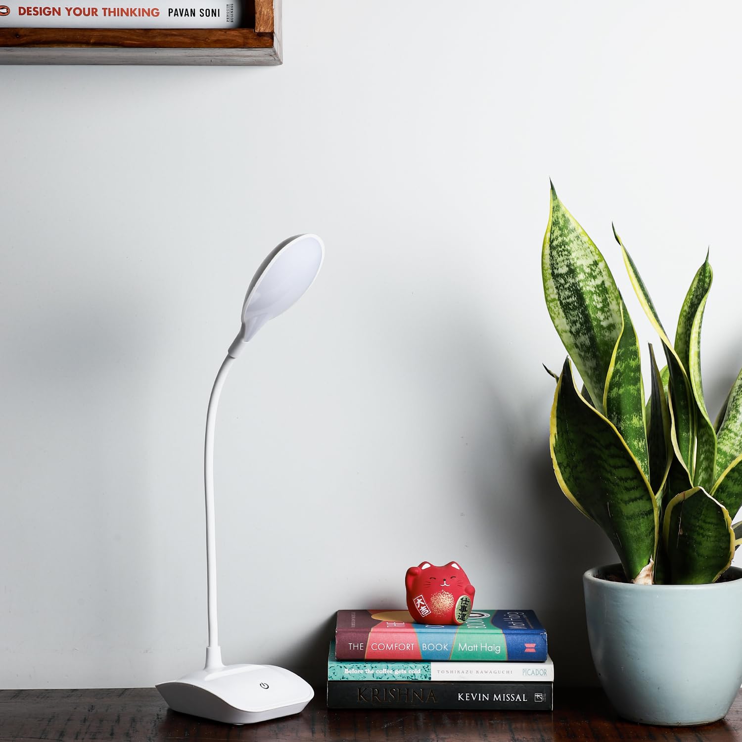 Lexton Rechargeable LED Study Desk Lamp (White) features adjustable brightness, energy-efficient LED lighting, and a sleek, portable design.