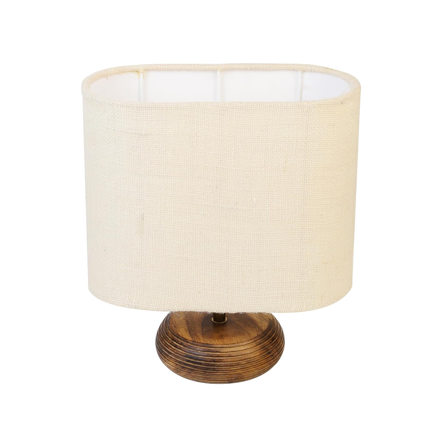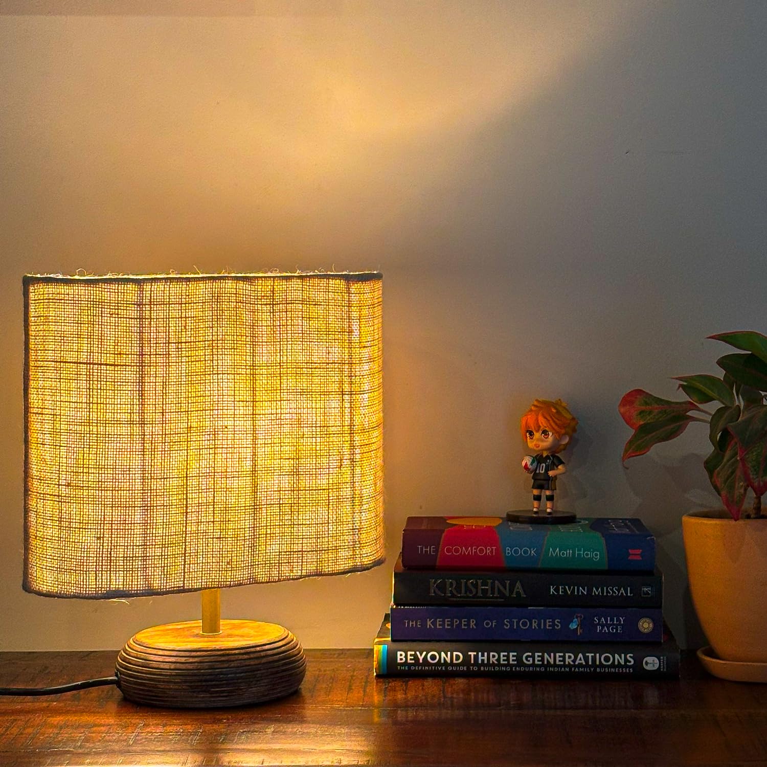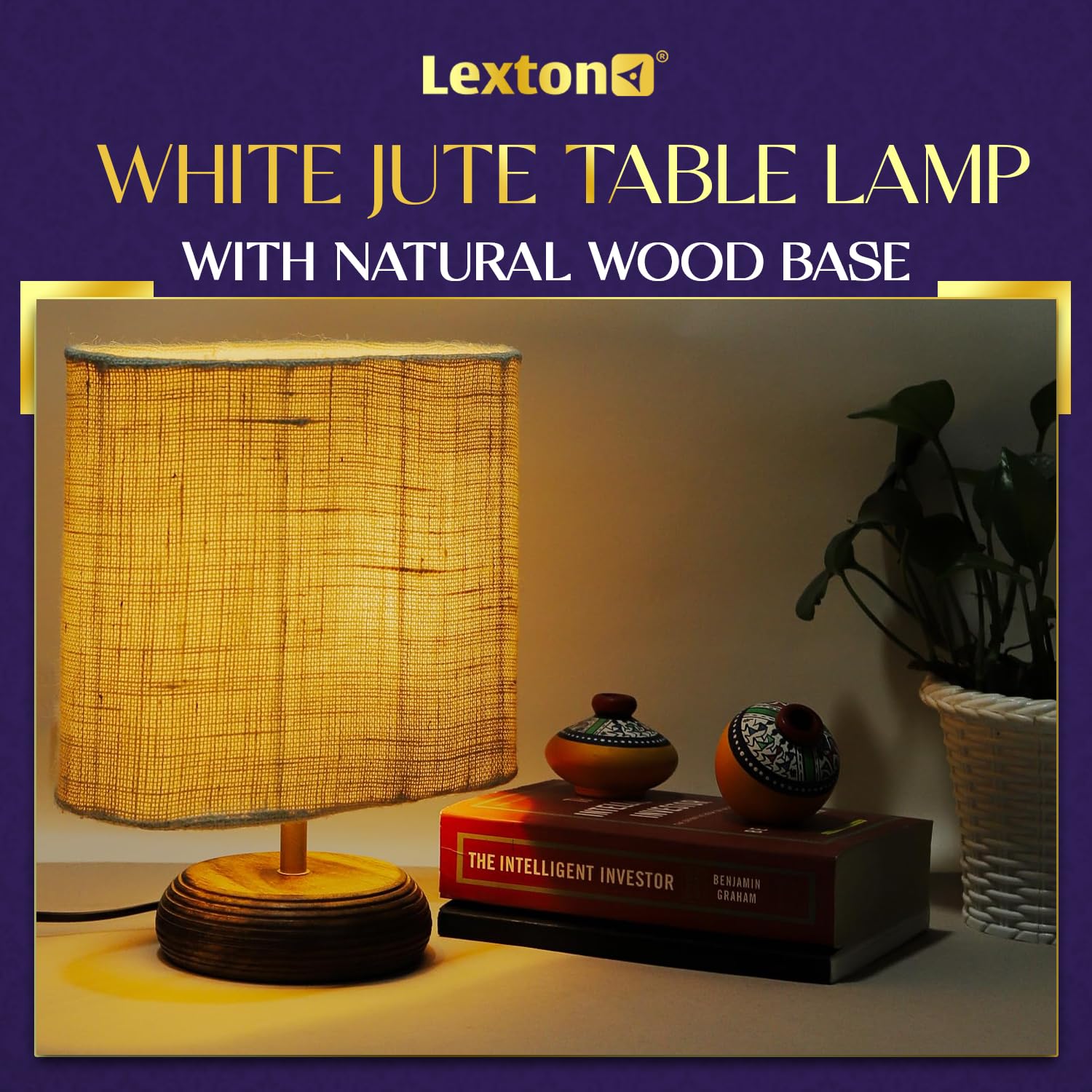 Lexton Stylish jute fabric lamp with a sturdy wooden stand, perfect for adding warm illumination and elegance to living rooms, side tables, and offices.