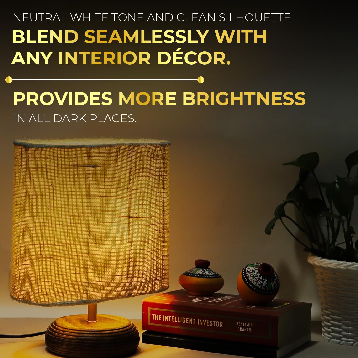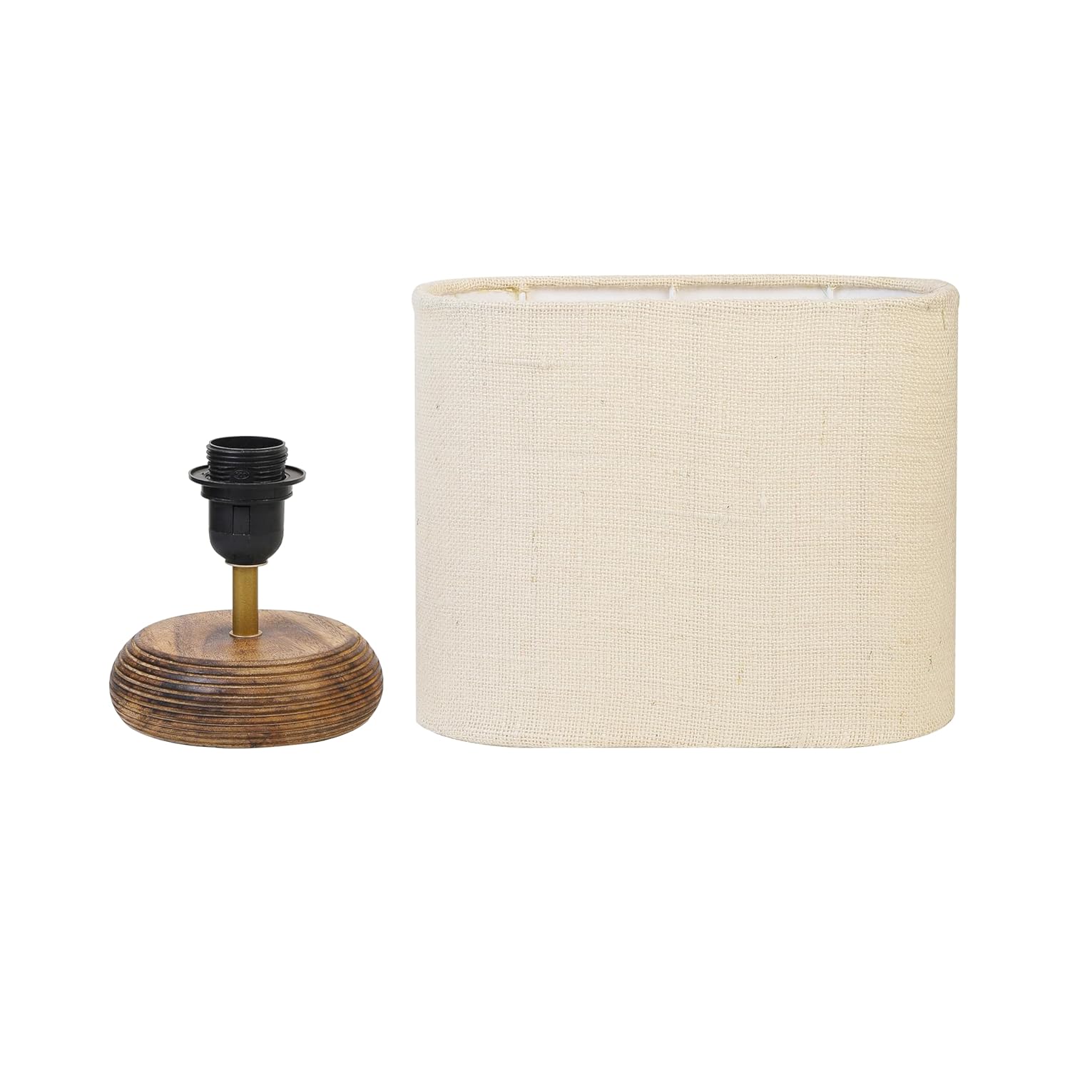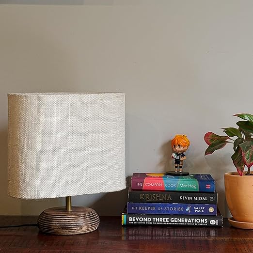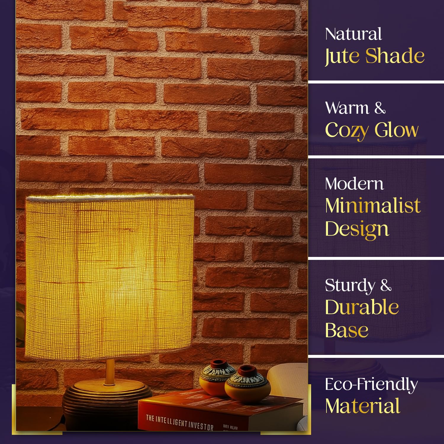 Lexton Stylish jute fabric lamp with a sturdy wooden stand, perfect for adding warm illumination and elegance to living rooms, side tables, and offices.