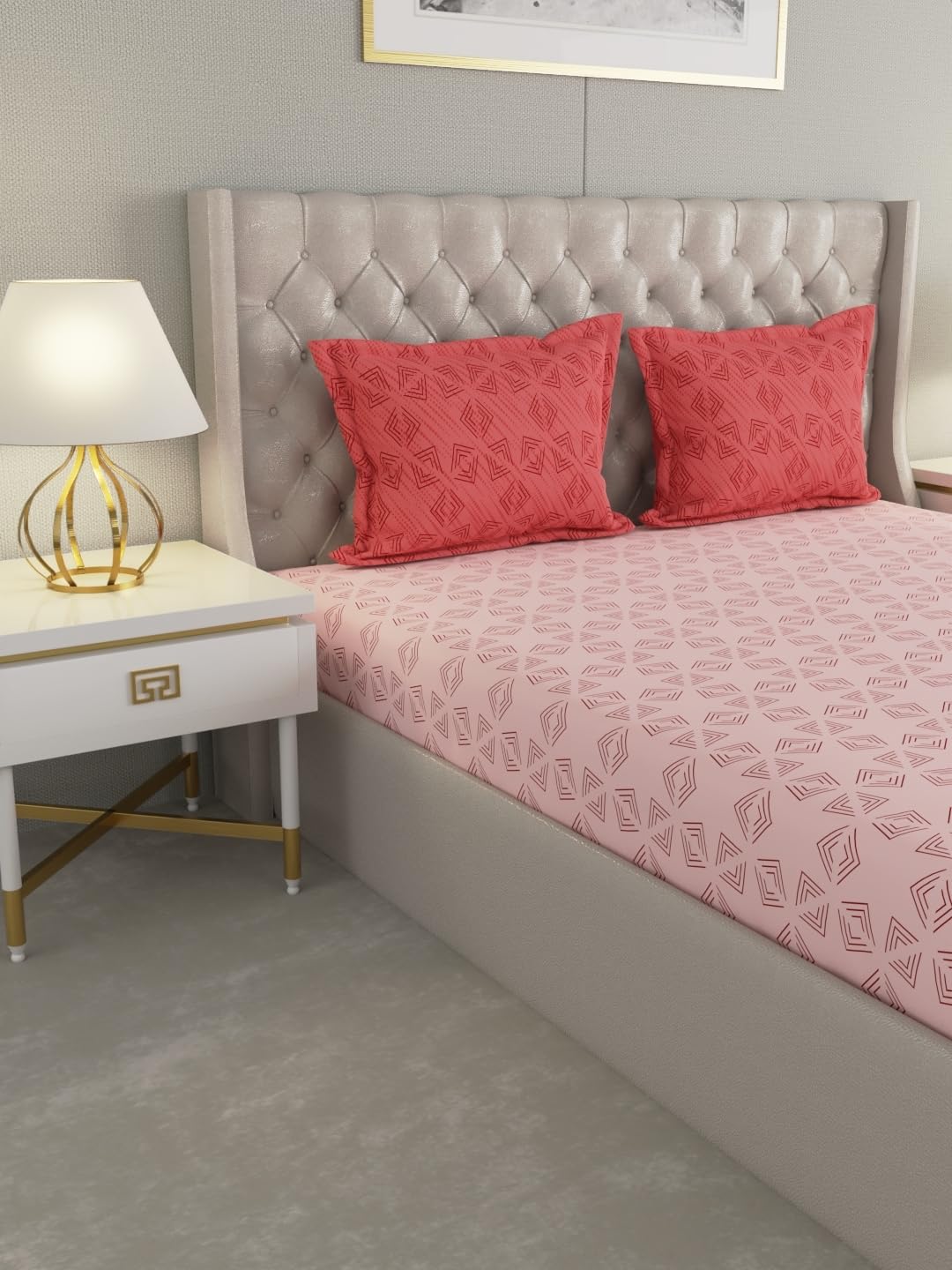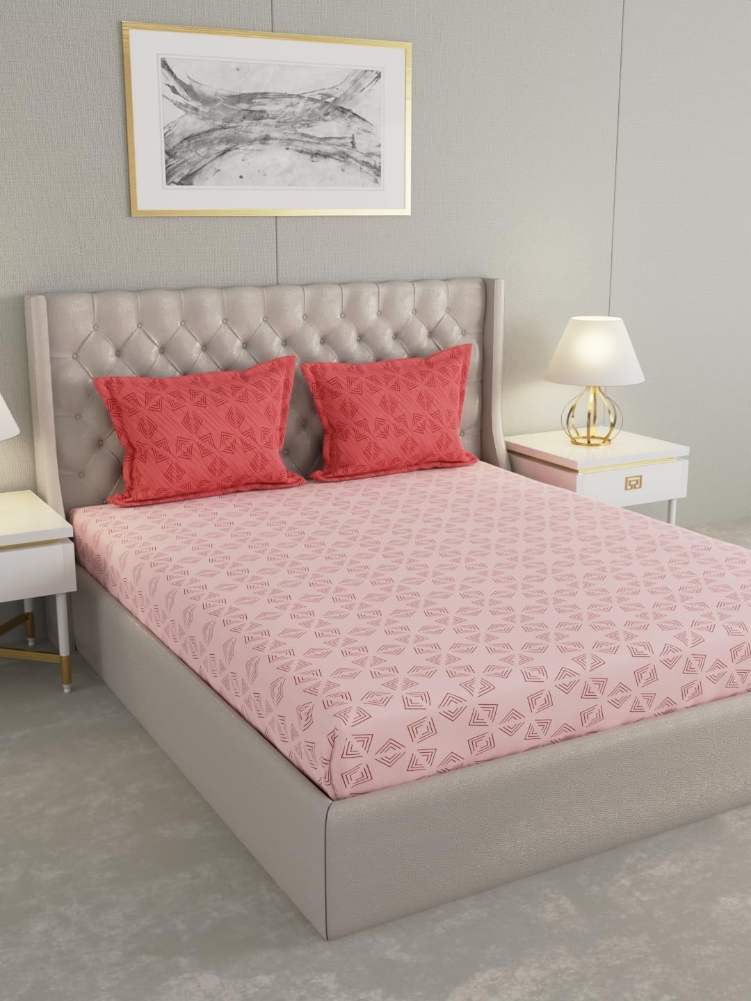 Raymond Home Celebrate Geometric Printed Double Bedsheet Set (012348-BF01). Made from a cotton-rich blend with a smooth 120 thread count, this queen-size bedsheet (2.24 m x 2.54 m) offers everyday comfort with durability and breathability.