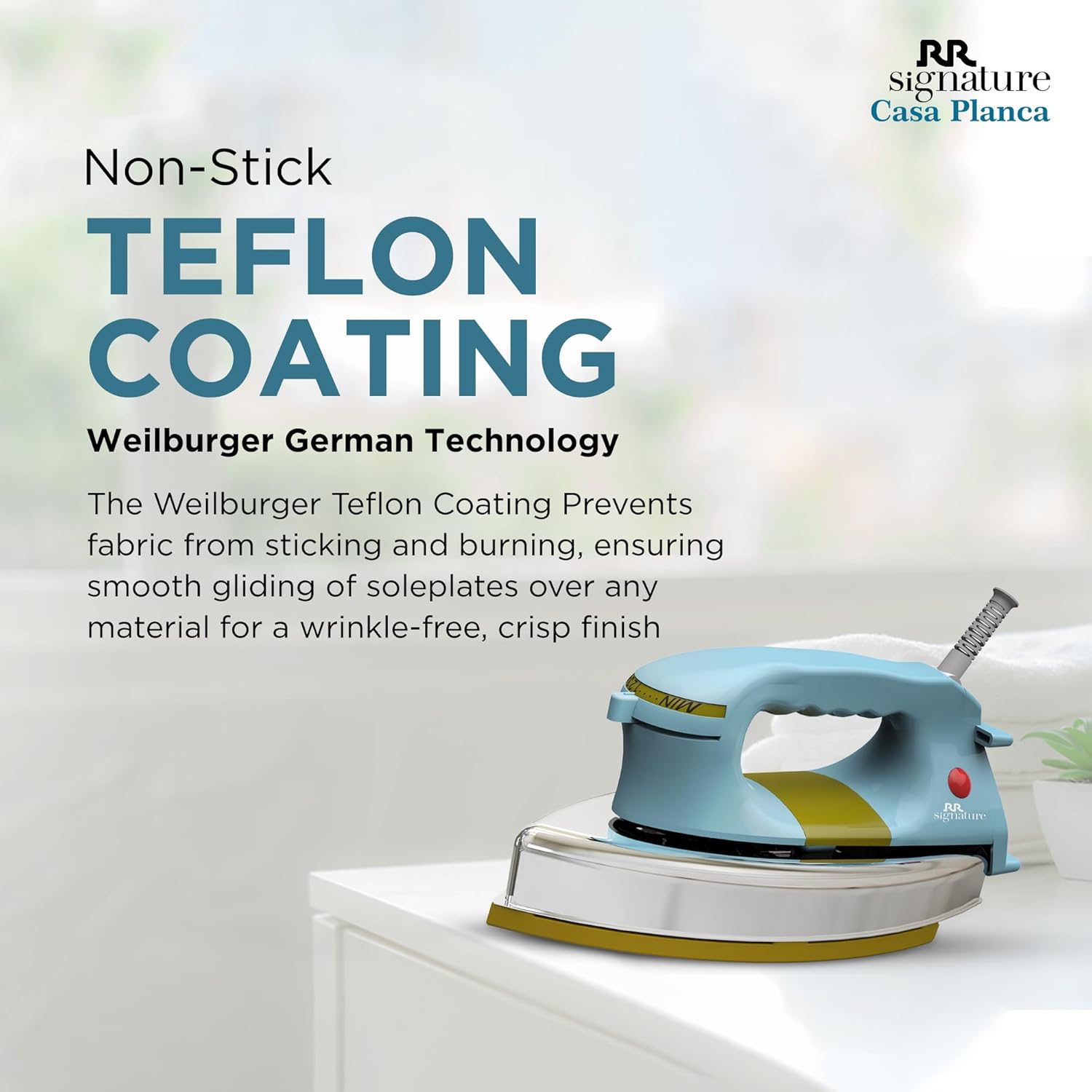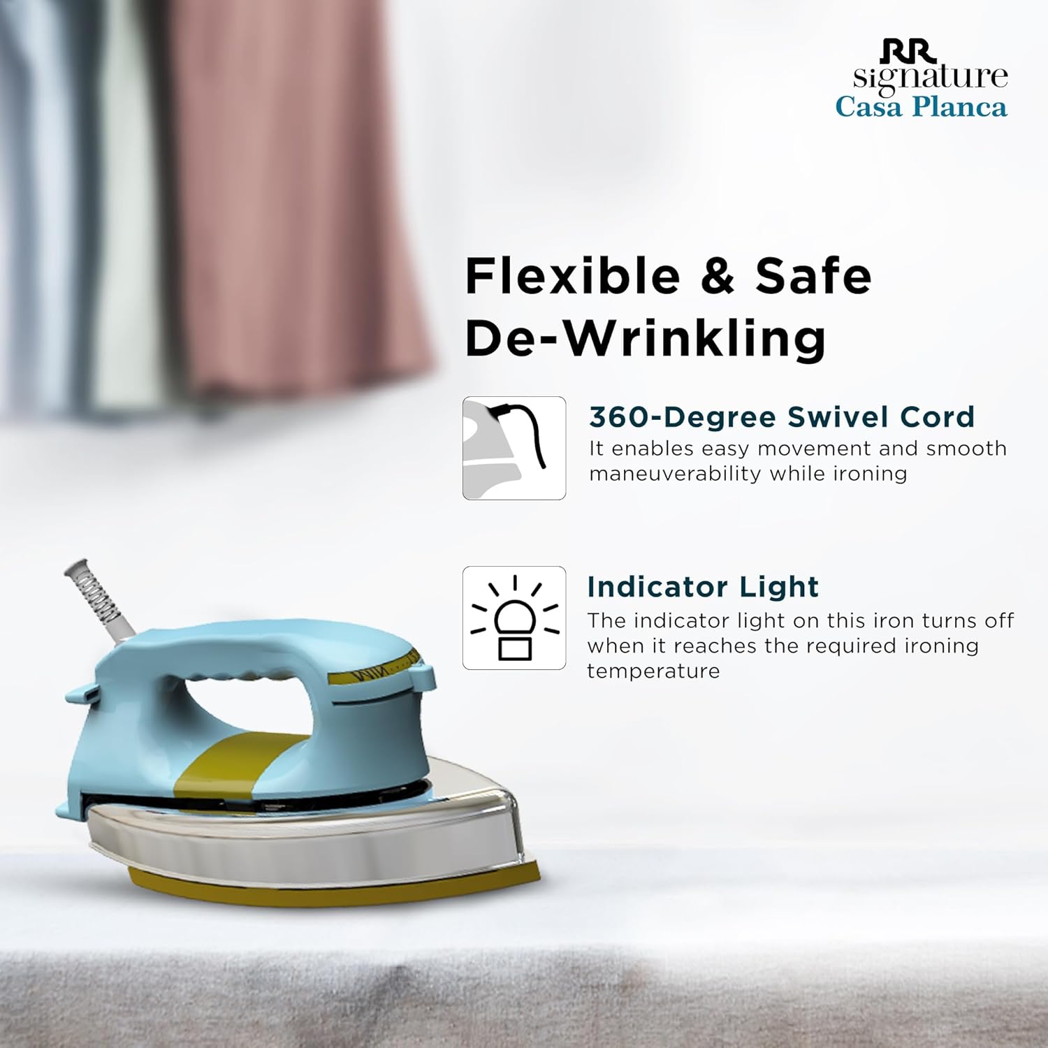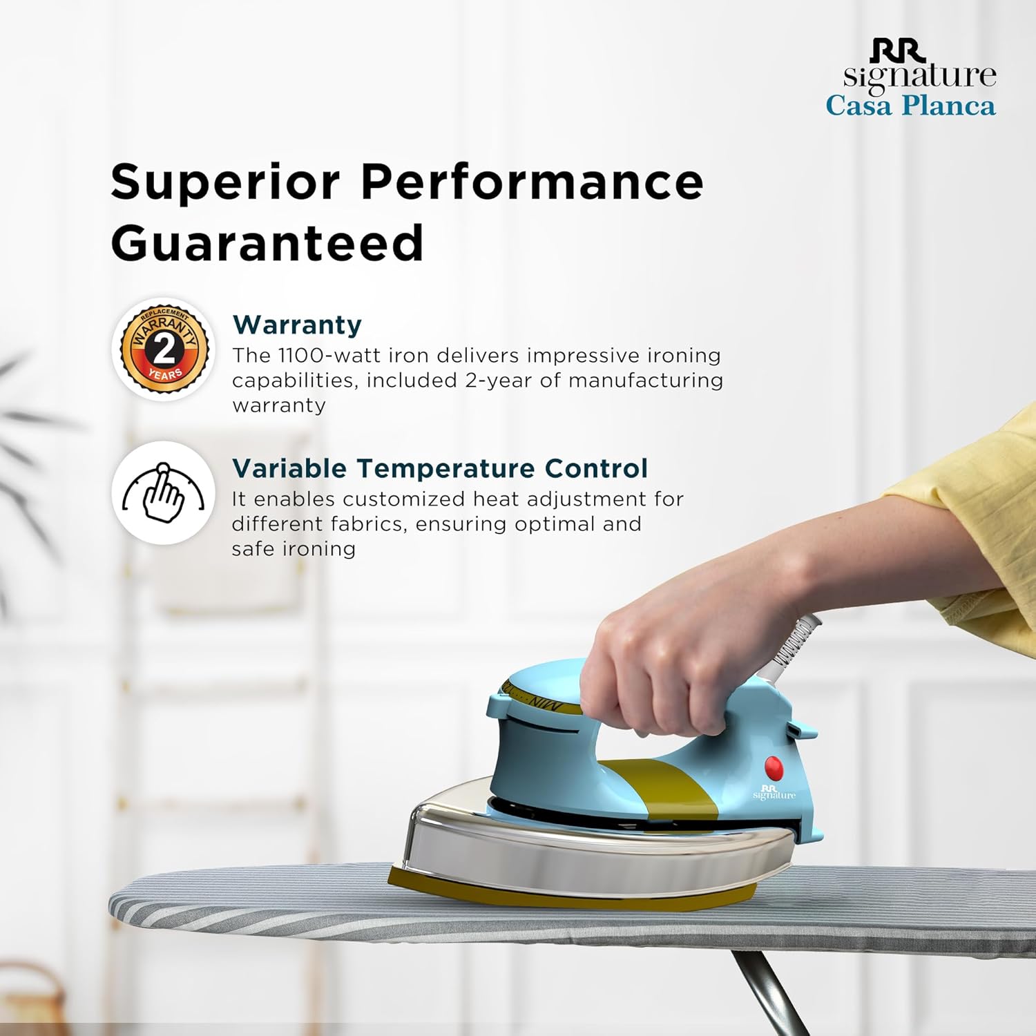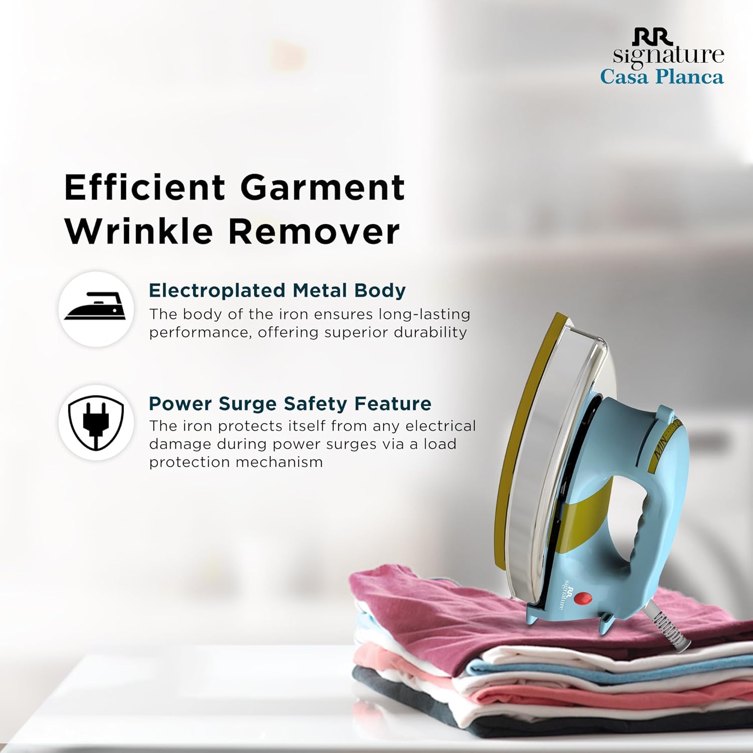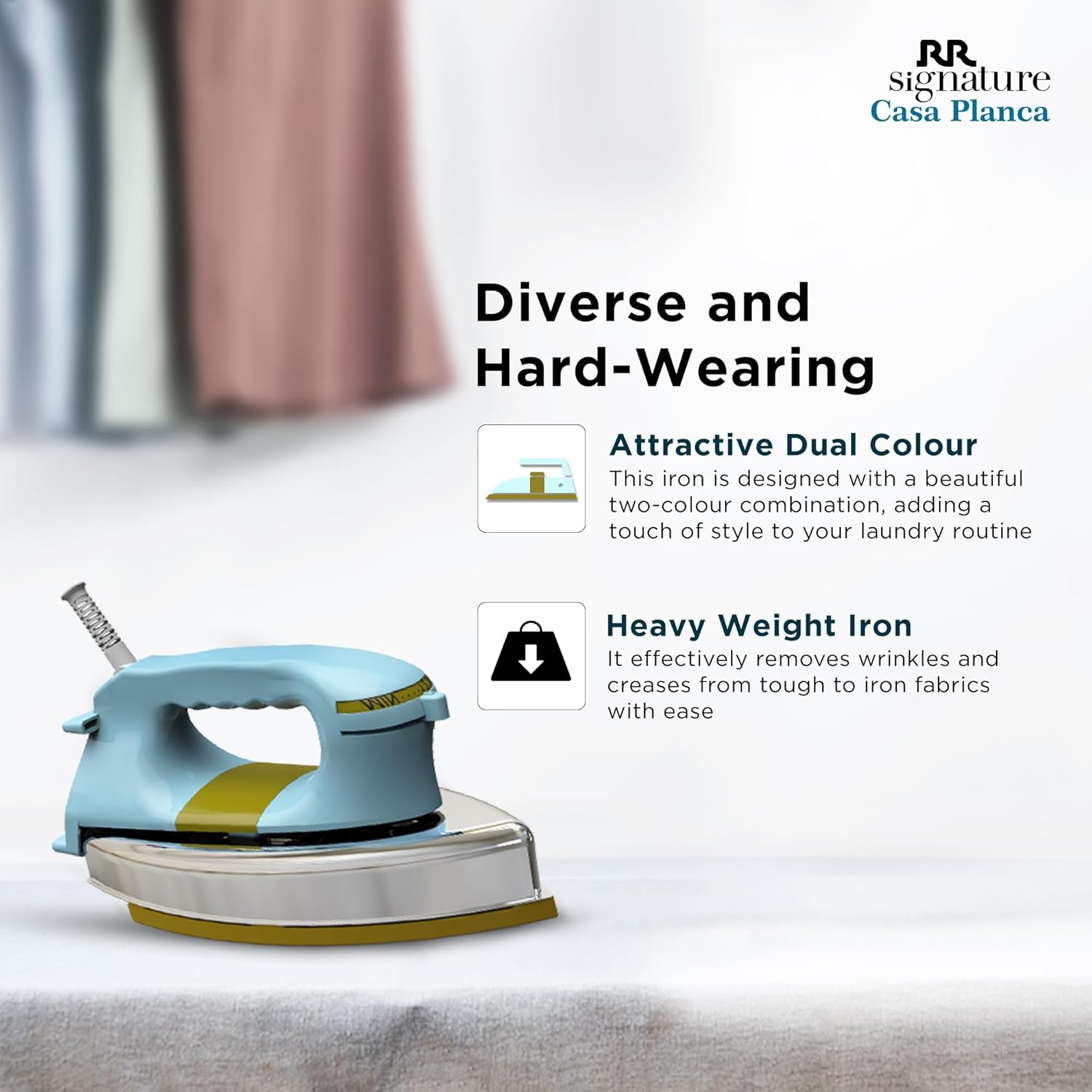 RR Signature Casa Planca 1100W Heavy Weight Dry Iron delivers powerful, fast, and efficient ironing.