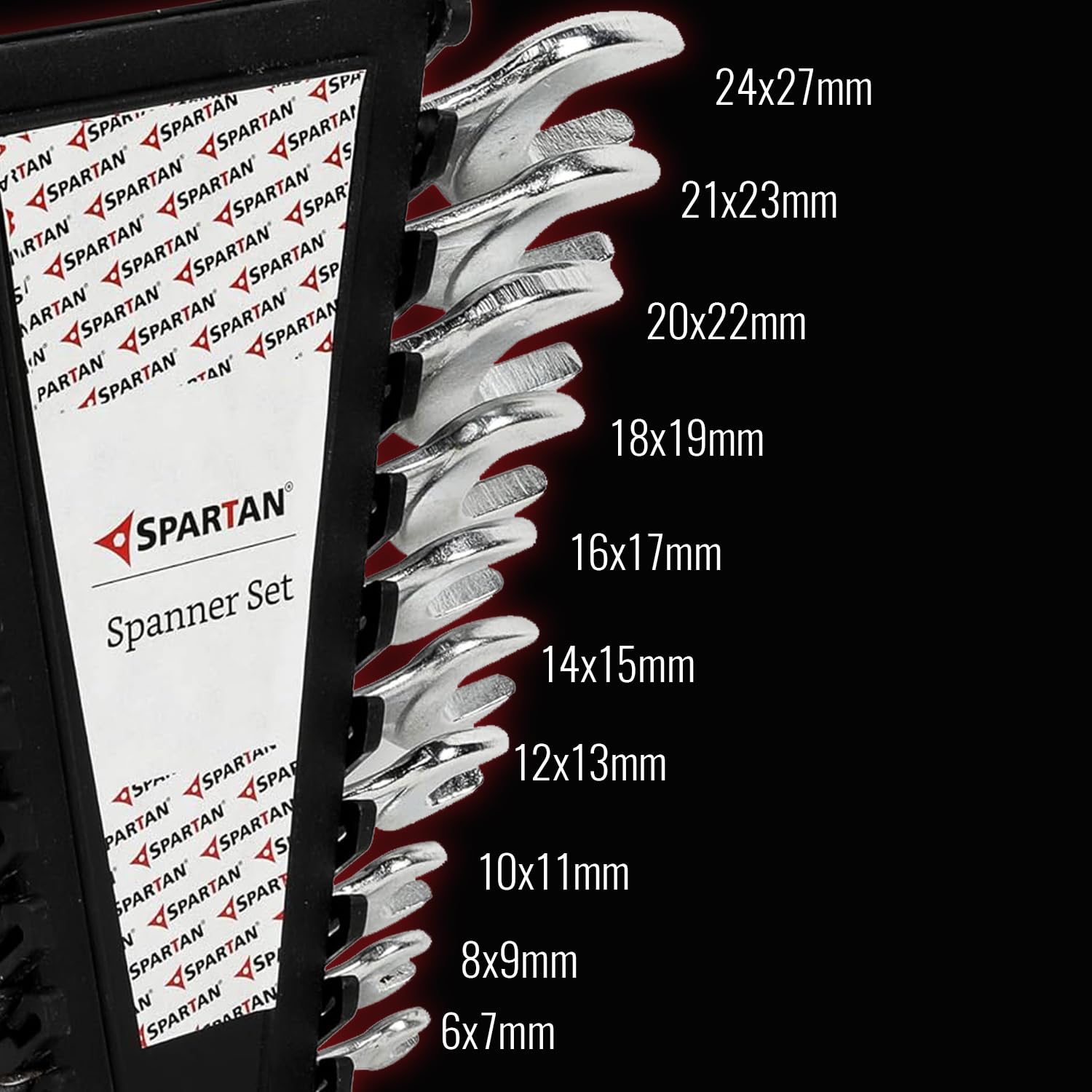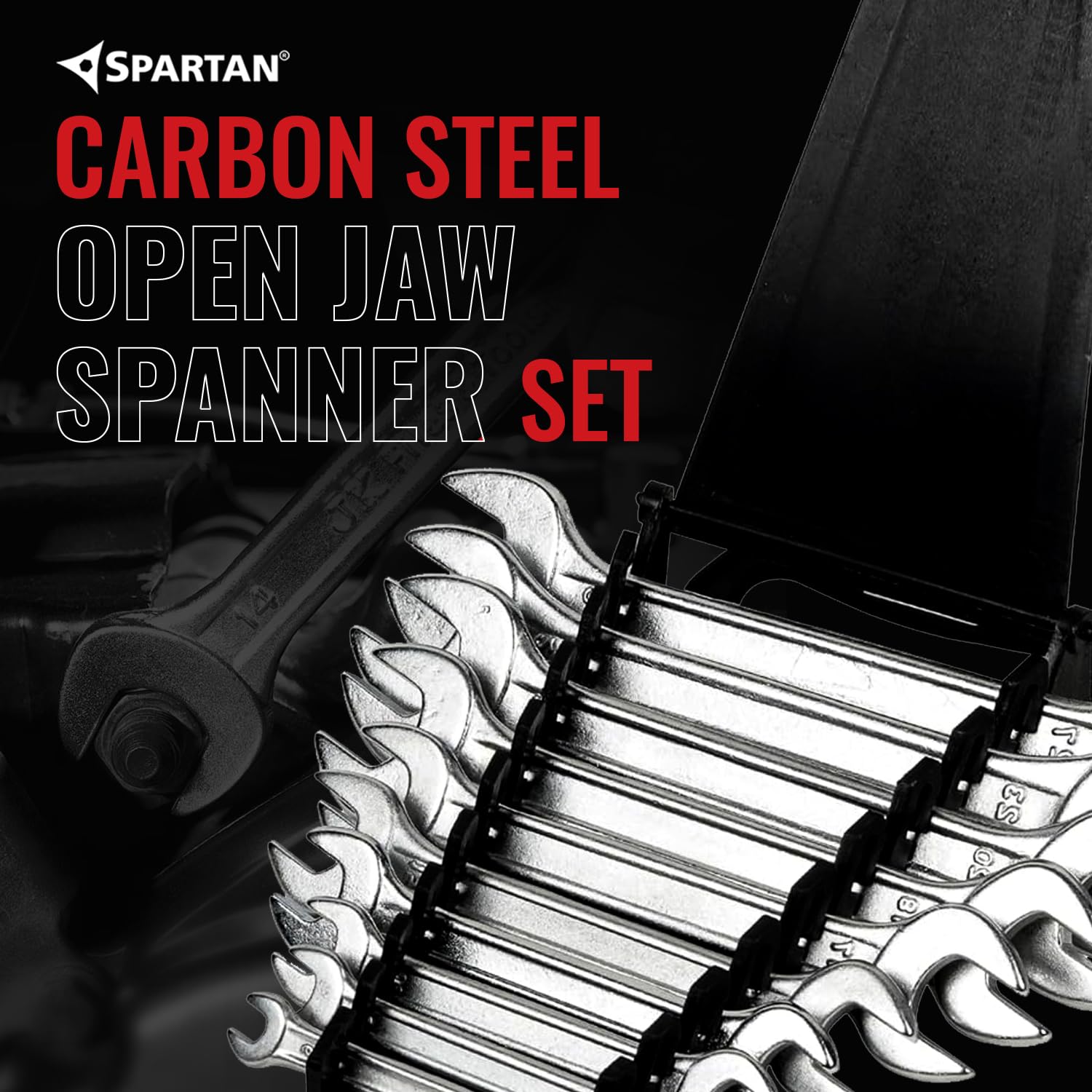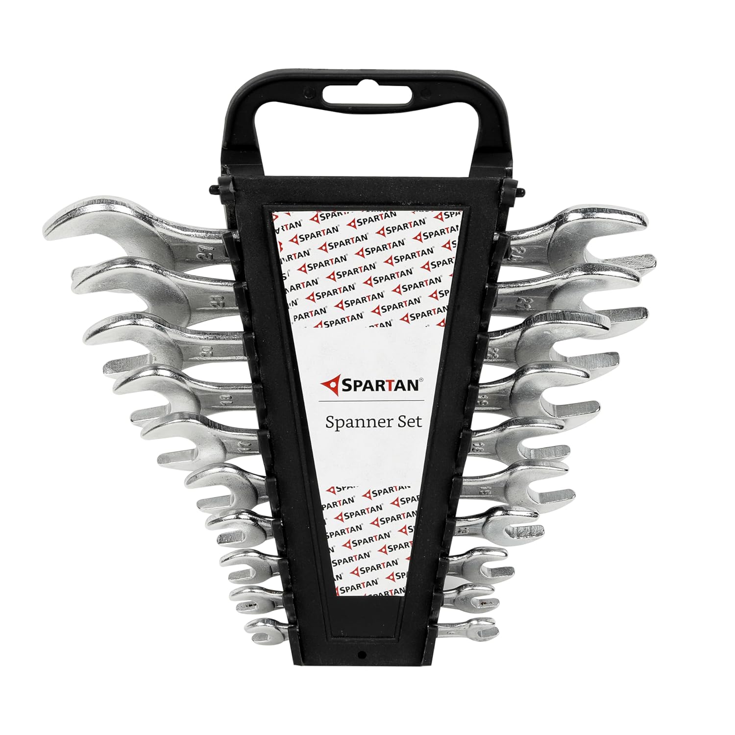 SPARTAN Carbon Steel Open Jaw Spanner Set/Wrench Set/Tool Kit Multipurpose Home Use and Professional Spanners, Corrosion Resistant Chrome Plating DOE Jaw Spanners (10 Piece)